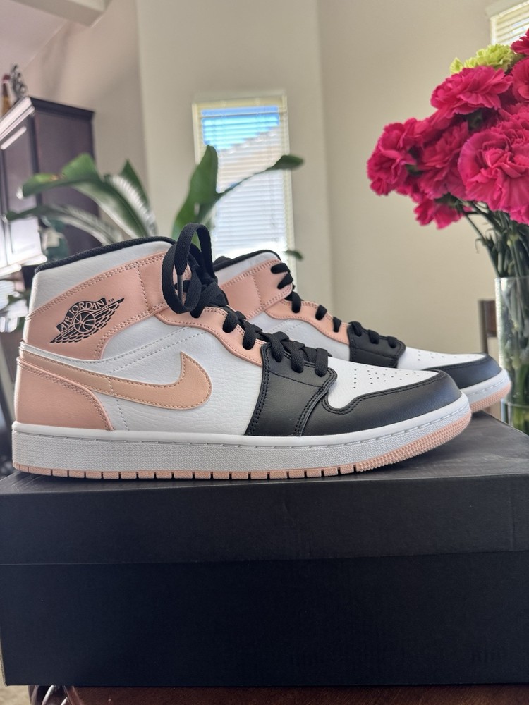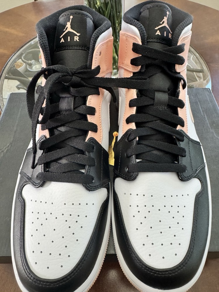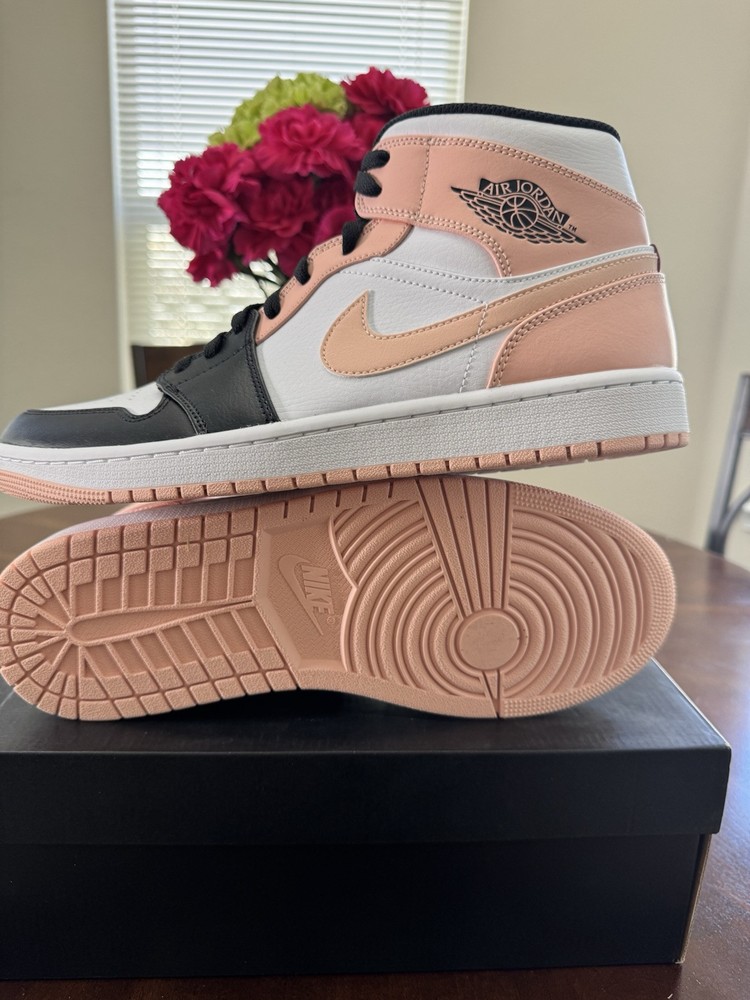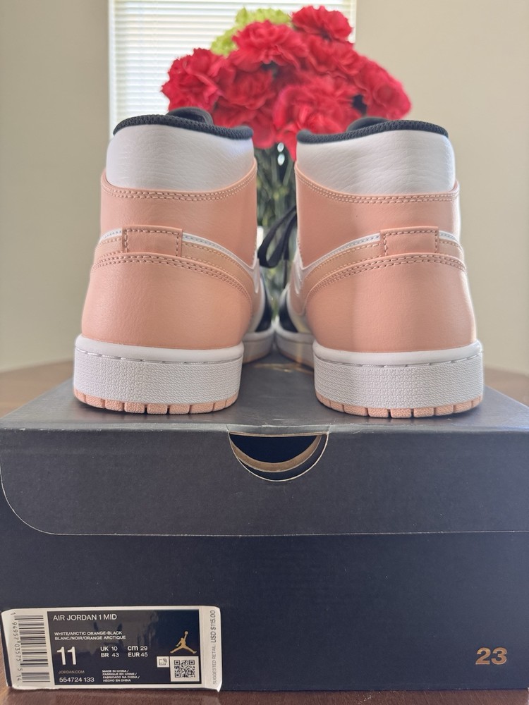 Elevate your sneaker game with the Nike Air Jordan 1 Mid Crimson Tint in a men's size 11. These stylish kicks feature a sleek leather upper, showcasing a striking colorblock design in white, black, and arctic orange. The mid-top shaft style offers a comfortable fit, making them perfect for all-day wear. The Air Jordan 1 sneakers are a part of the renowned 2021 product line and come with the style code 554724-133. Not only do they look great, but they also boast a durable construction and the iconic Jordan brand logo, ensuring that you're getting both style and substance. Add a touch of orange flair to your footwear collection with these must-have sneakers.