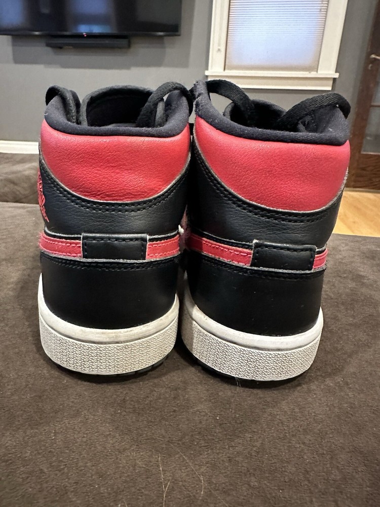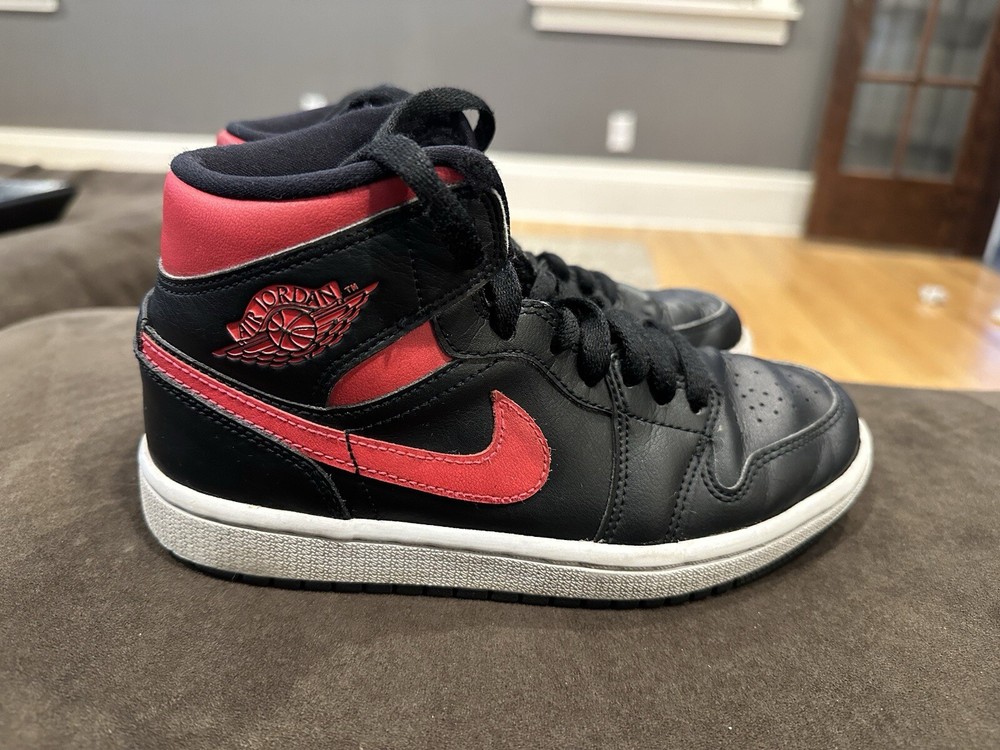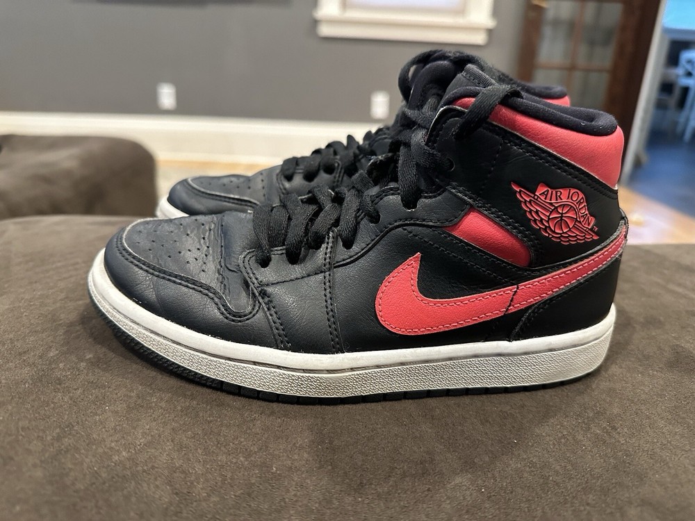 Elevate your sneaker game with the Nike Air Jordan 1 Mid 'Hot Punch' 2020. Featuring a sleek black patent leather upper, these sneakers are a stylish addition to any wardrobe. The mid-top silhouette and comfortable fit make them perfect for both casual wear and athletic activities, such as basketball. With a women's size 5 or kids' size 3, these sneakers are a must-have for any sneakerhead. The Air Jordan brand is known for its high-quality materials and attention to detail, making these shoes a great investment for any shoe lover. Don't miss out on the chance to add the Nike Air Jordan 1 Mid 'Hot Punch' to your collection.