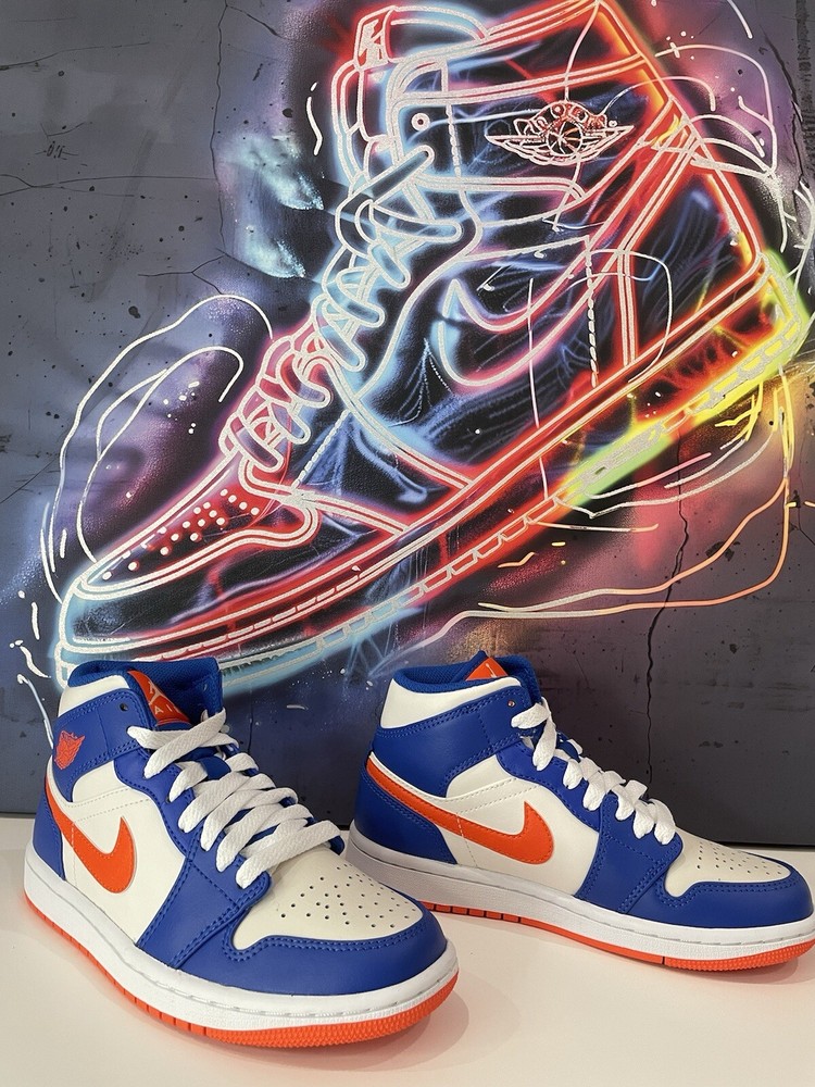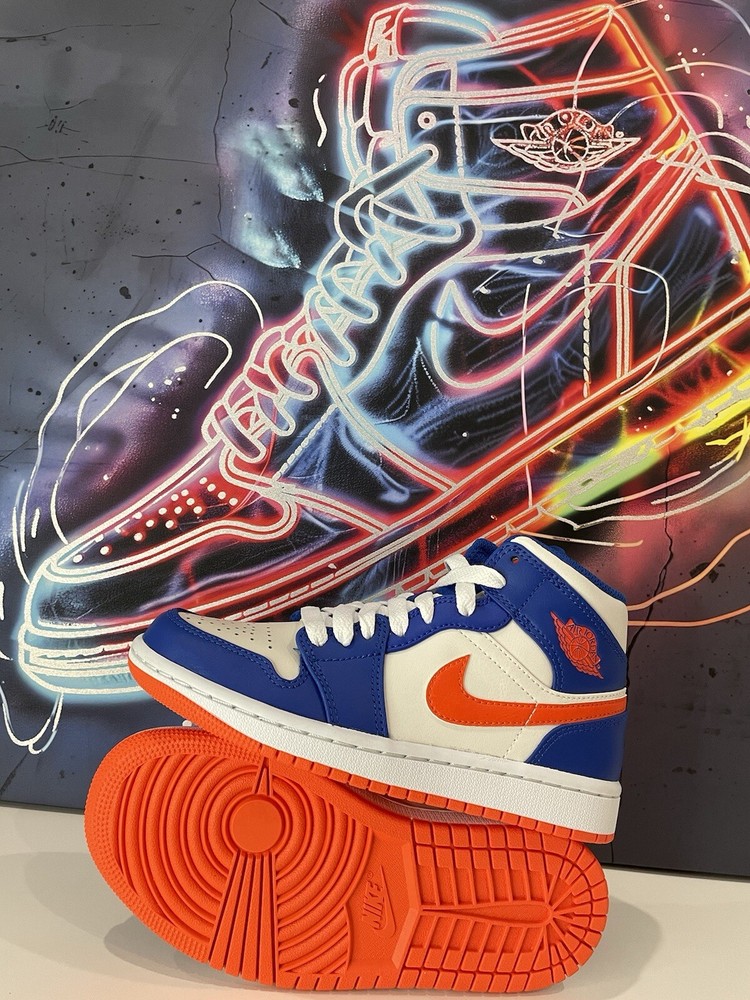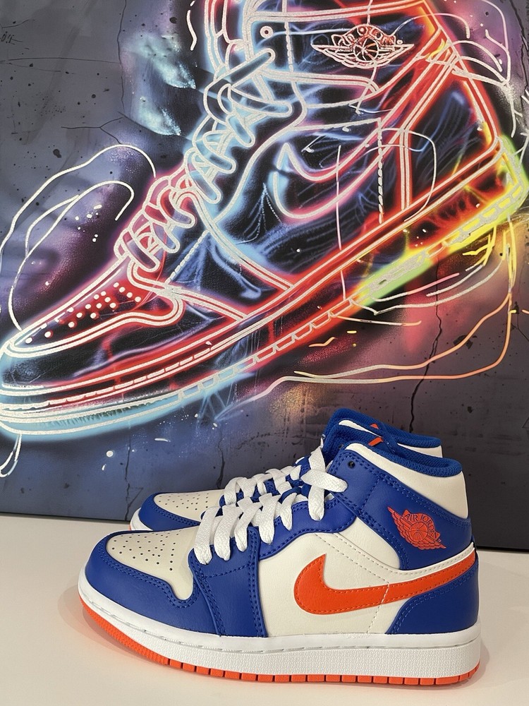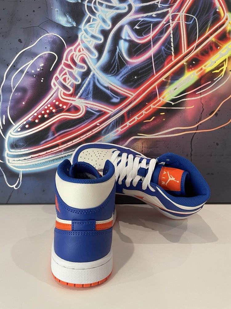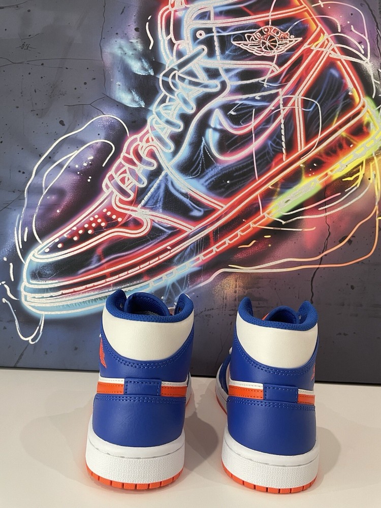 Elevate your game with these Nike Air Jordan 1 Mid (Knicks) sneakers in US Size 3.5. These sneakers feature a multicolor design and mid-top shoe shaft style, making them perfect for basketball players and sneaker enthusiasts alike. The style code is FD1029-400, and the shoes are part of the Air Jordan product line. These sneakers are made for men and have a UK shoe size of 3 and a US shoe size of 3.5. They are also suitable for EU shoe size 35.5. Whether you're hitting the court or just want to add these stylish sneakers to your collection, these Nike Air Jordan 1 Mid (Knicks) sneakers are the perfect choice.
