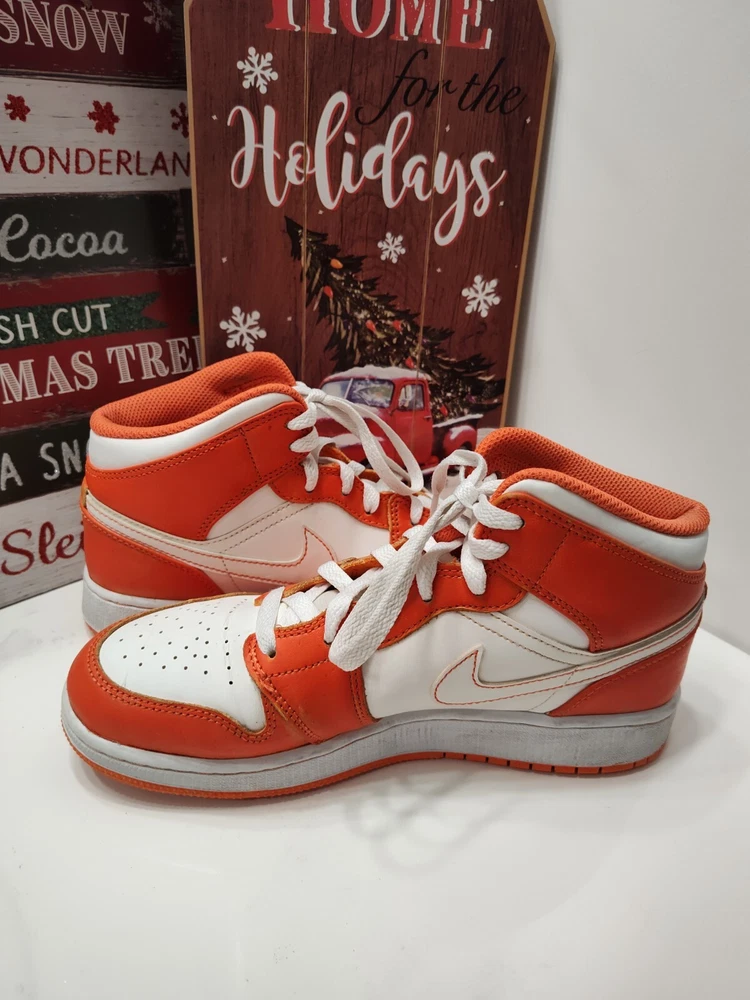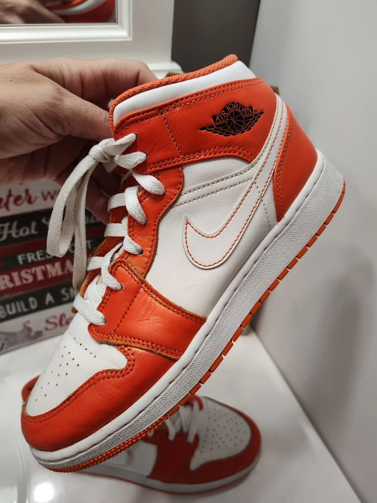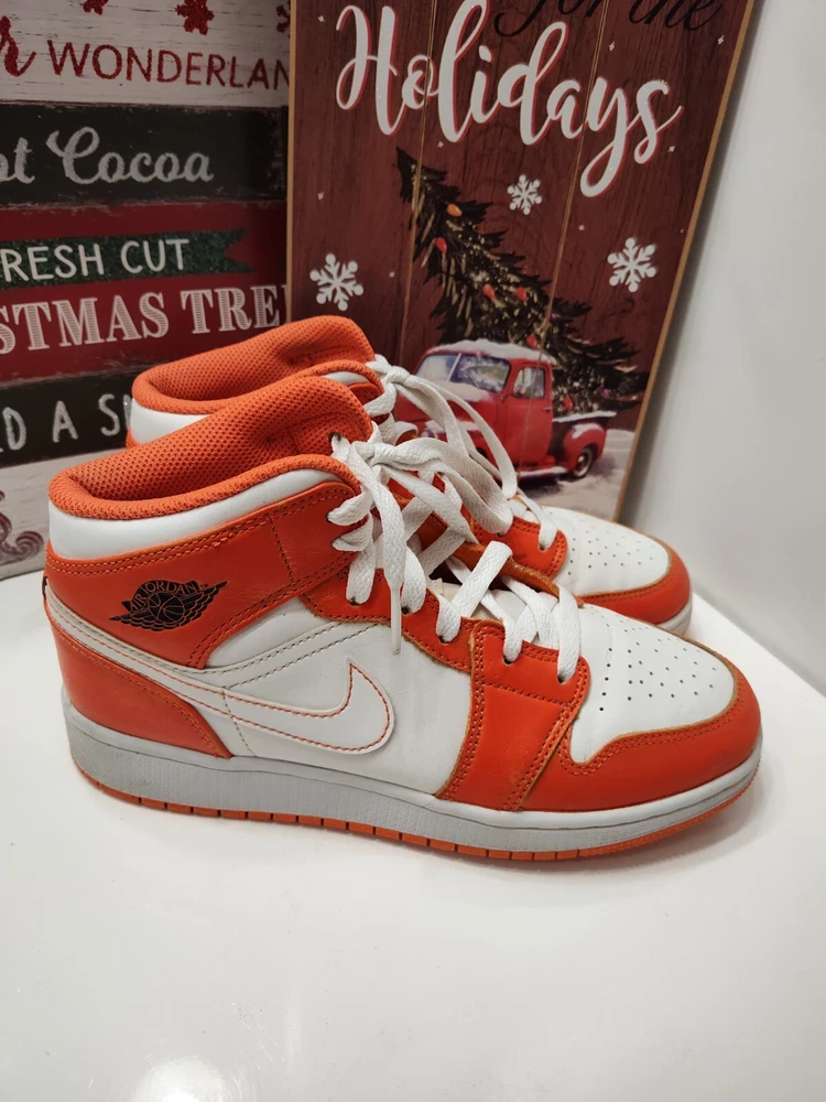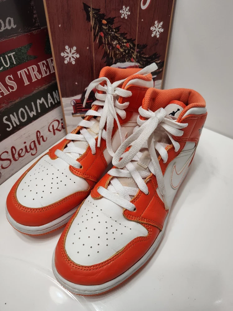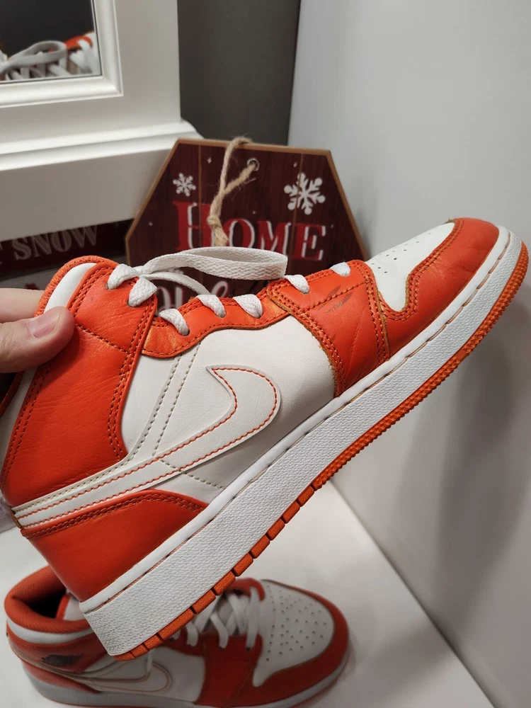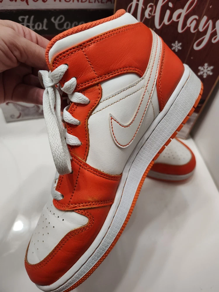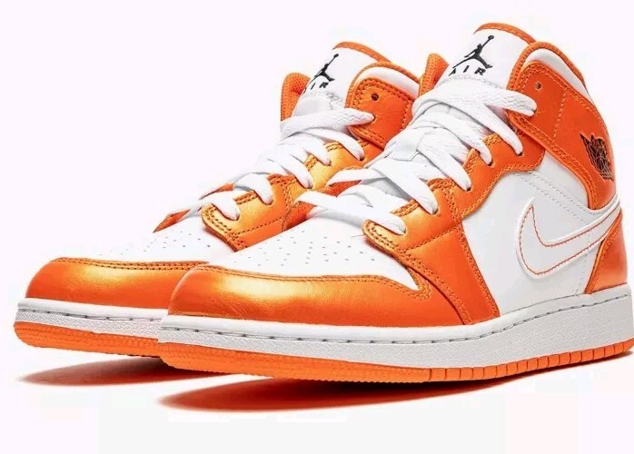Elevate your sneaker game with these Nike Air Jordan 1 Mid Leather Trainers in Metallic Orange. With a stylish mid-top shoe shaft, these trainers are perfect for any athletic occasion. The shoe type is a standard trainer, and the upper material is made of high-quality leather. These Nike Air Jordan 1 trainers are part of the Nike Air Jordan 1 product line and feature a unique style code of DM3531-800. They are perfect for men who want to add a touch of athletic style to their wardrobe. The shoes are not vintage and have not been customized in any way. Get your hands on these sleek and stylish sneakers today!