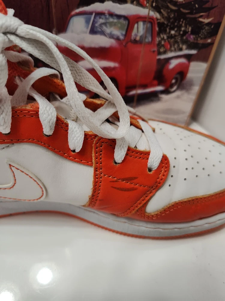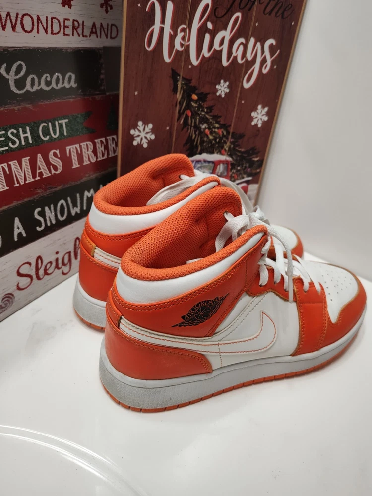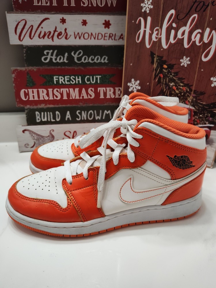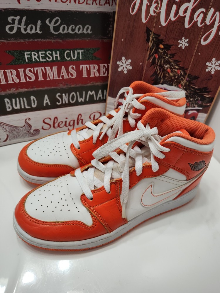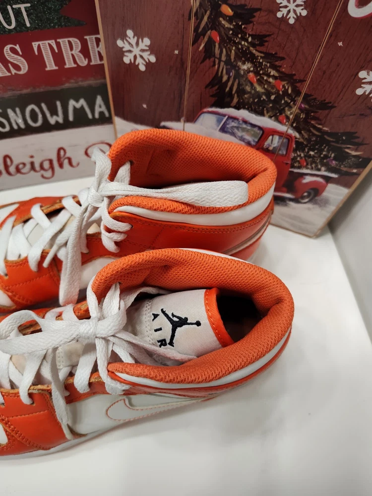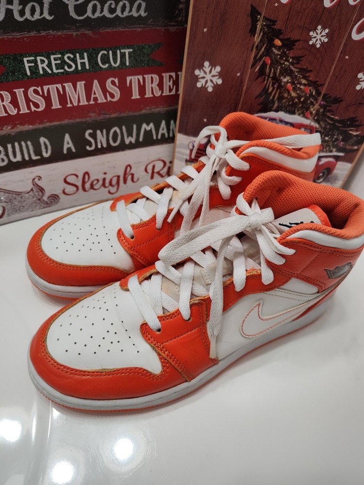 Elevate your sneaker game with these Nike Air Jordan 1 Mid Leather Trainers in Metallic Orange. With a stylish mid-top shoe shaft, these trainers are perfect for any athletic occasion. The shoe type is a standard trainer, and the upper material is made of high-quality leather. These Nike Air Jordan 1 trainers are part of the Nike Air Jordan 1 product line and feature a unique style code of DM3531-800. They are perfect for men who want to add a touch of athletic style to their wardrobe. The shoes are not vintage and have not been customized in any way. Get your hands on these sleek and stylish sneakers today!