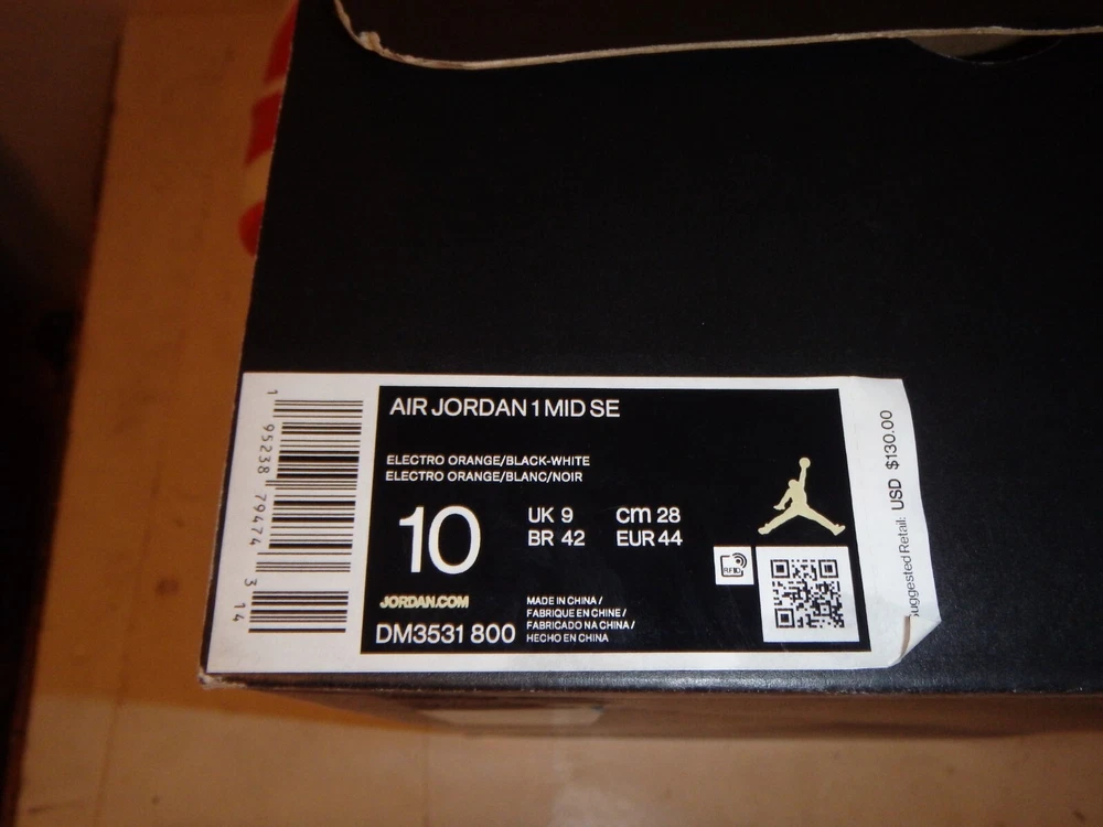 Up for sale is a pair of Nike Air Jordan 1 Mid SE Electro Orange DM3531-800. Size 10. Great used condition. NO INSIDE SOLES. They were taken out to use custom soles. Comes in original box. See pictures to see exactly what you are bidding on. Shipping and handling will be $20. Shipping to US address only. Payment must be made in 3 days. Thanks for looking and check out my other auctions