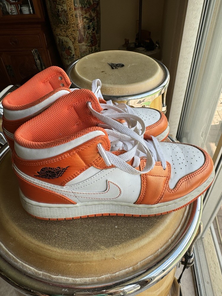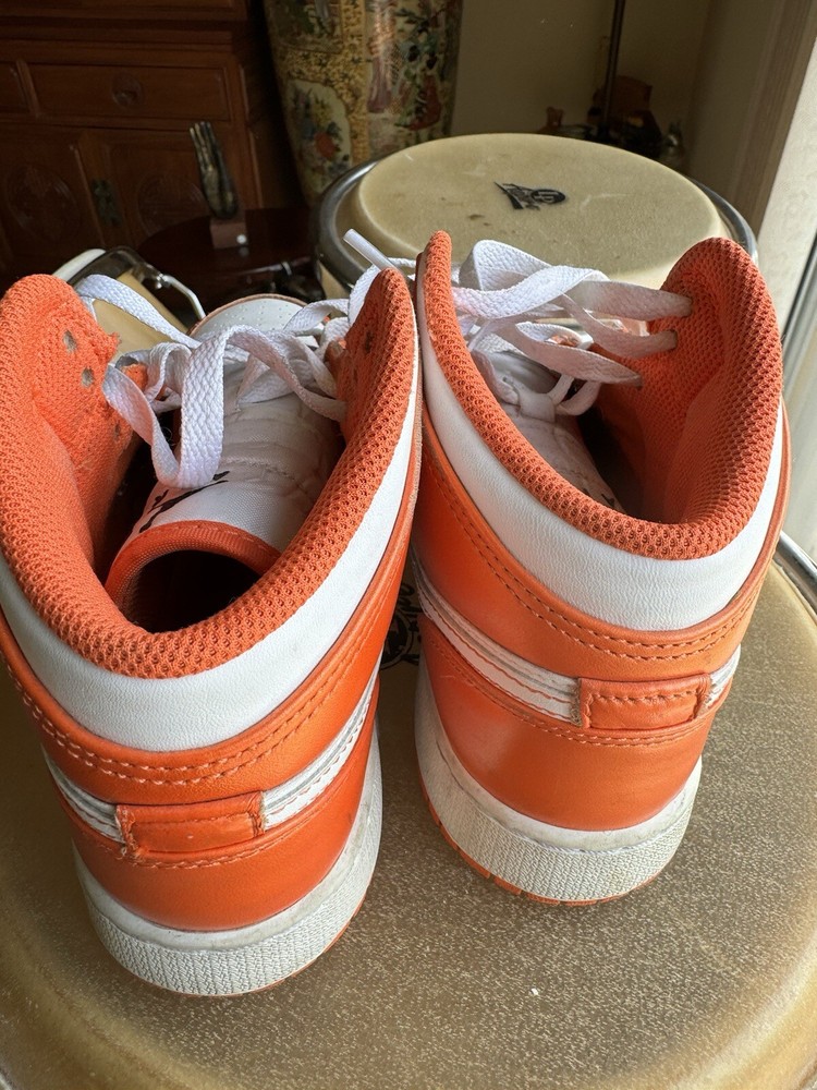 Elevate your sneaker game with the Nike Air Jordan 1 Mid SE GS 'Electro Orange' 2021. This stylish and versatile sneaker features a mid-top silhouette, unisex design, and eye-catching orange colorway that is sure to turn heads. Perfect for athletic activities or casual wear, this sneaker is designed with a comfortable fit and durable construction that will last for years to come. Crafted by the trusted brand Nike, this sneaker is a must-have for any sneaker enthusiast. The Jordan 1 Mid SE GS 'Electro Orange' 2021 is a top-of-the-line sneaker that is perfect for men's size 4.5 or women's size 6. Don't miss out on this opportunity to add a stylish and comfortable sneaker to your collection.