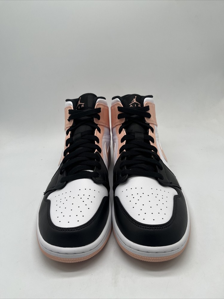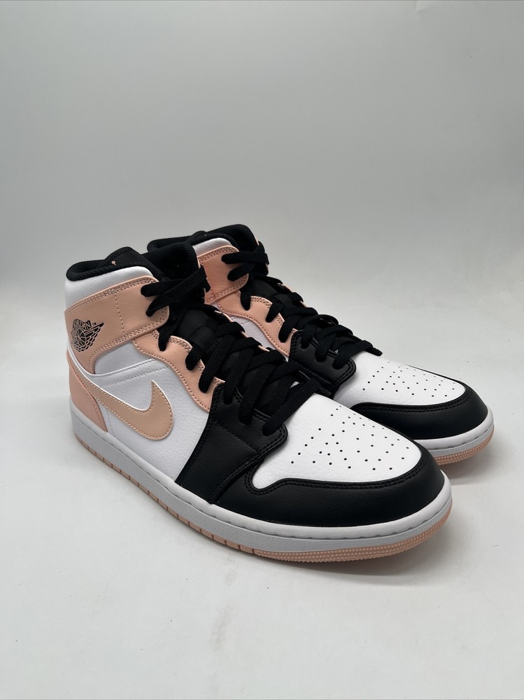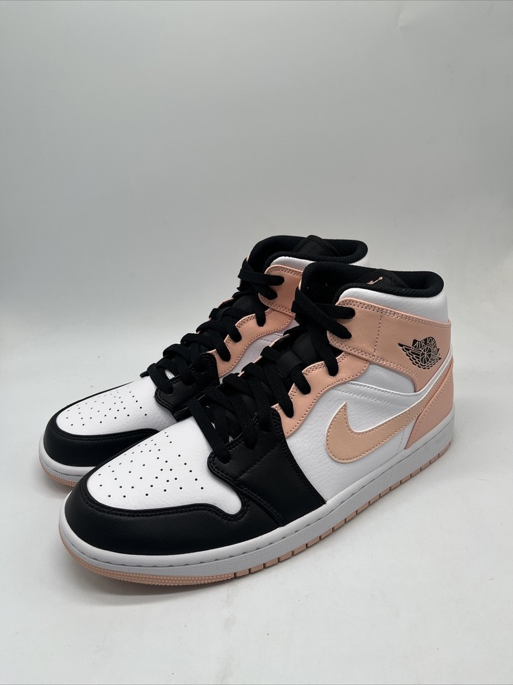 Elevate your sneaker game with these Air Jordan 1 Mids in a fresh white and arctic orange colorway. With a mid top style, these sneakers feature a leather upper material and a medium width for a comfortable fit. The 2021 release boasts a stylish silhouette and a classic Air Jordan 1 design, complete with the iconic Jordan brand logo on the side. Perfect for athletic activities or casual wear, these sneakers are a must-have for any sneakerhead or Jordan fan. Whether you're hitting the court or the streets, these size 11.5 shoes will keep you looking and feeling fresh. Get your hands on a pair of Air Jordan 1 Mids today.