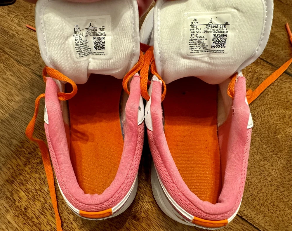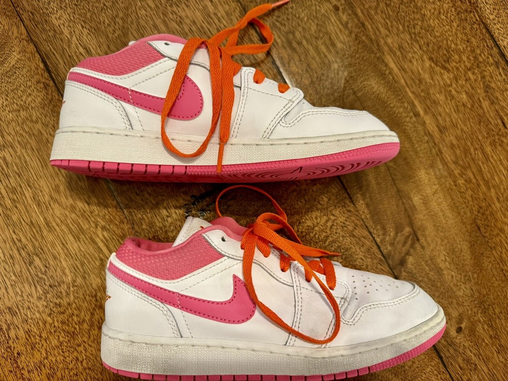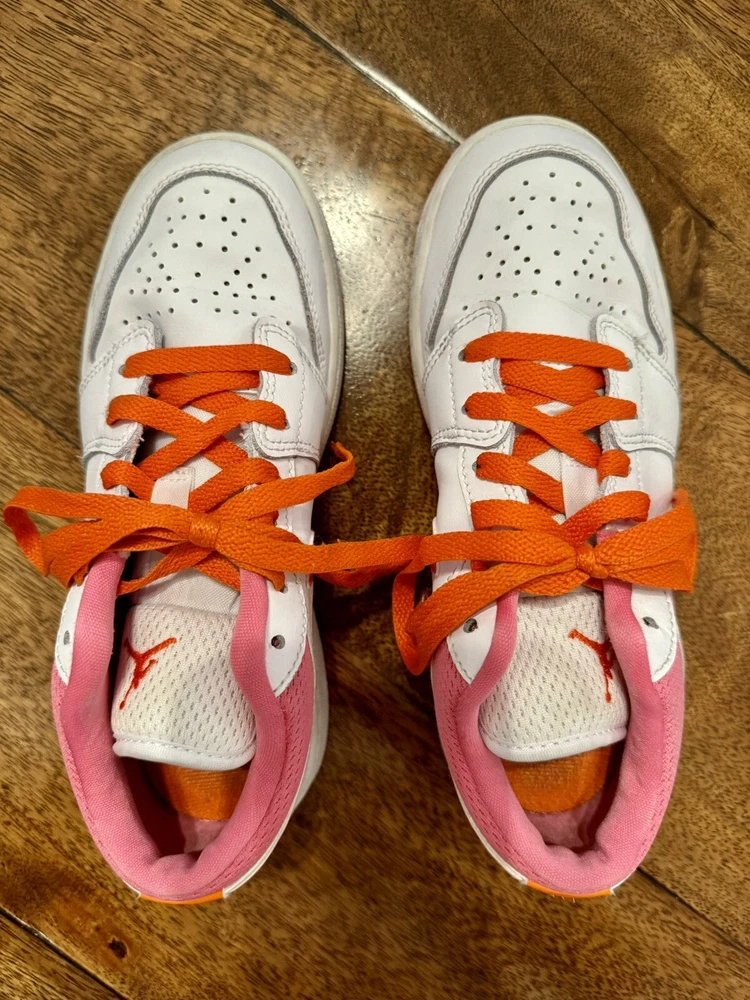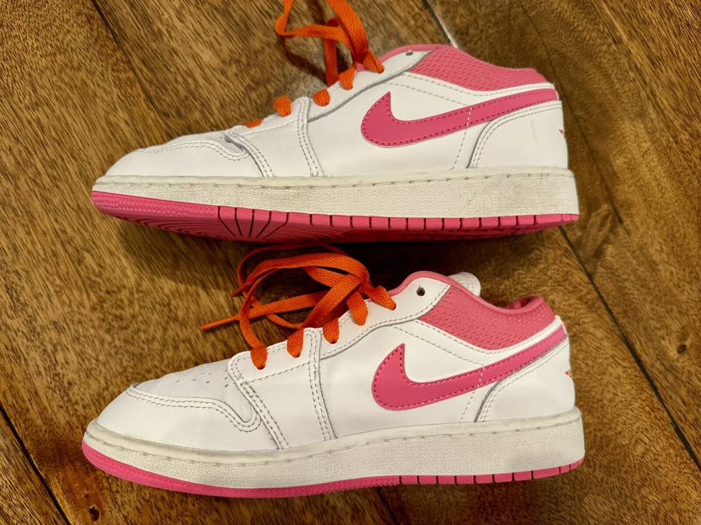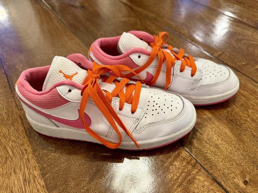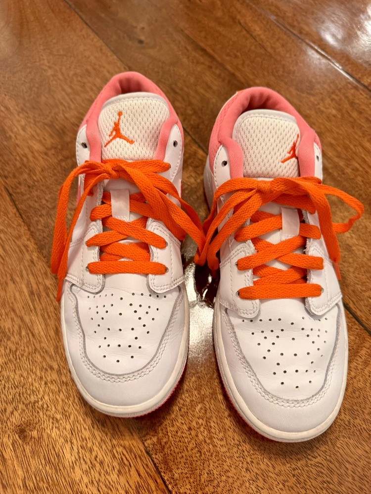 Awesome condition!!!! Nike Air Jordan 1 Mid Pinksicle Pink Orange Sneakers Size 3.5 Youth / 5 Women The lace-up closure ensures a secure fit while the leather upper material provides durability. These sneakers feature the iconic Jordan Logo character and are a part of the Nike Air product line. Box is not included. I do my best to find and note any issues. I couldn’t find any defects other than minor wear that is to be expected from wear. However I’m only human so I could have missed something. Please see pics for details. We are a non-smoking family with small non-shedding dogs. Let me know if you have any questions. Thanks for looking!
