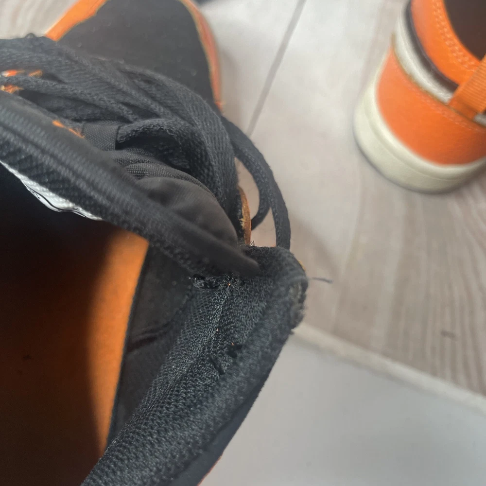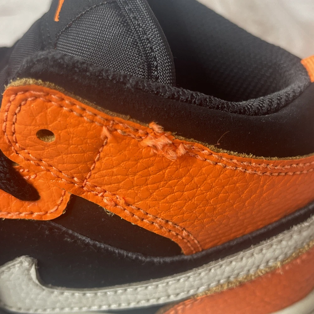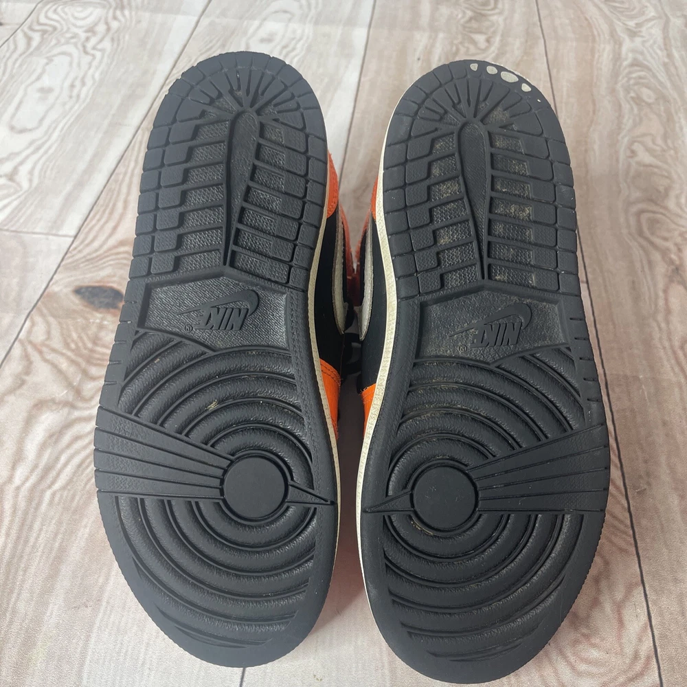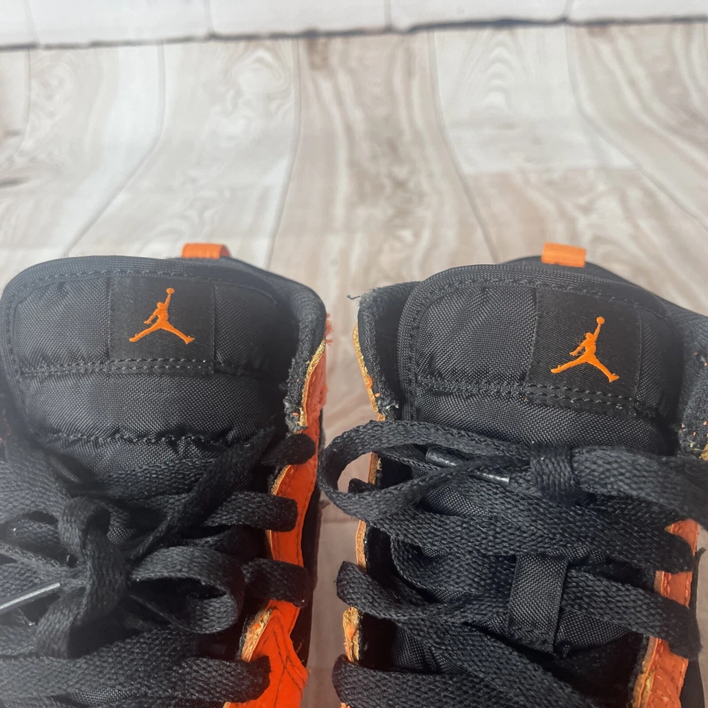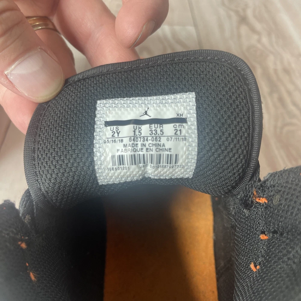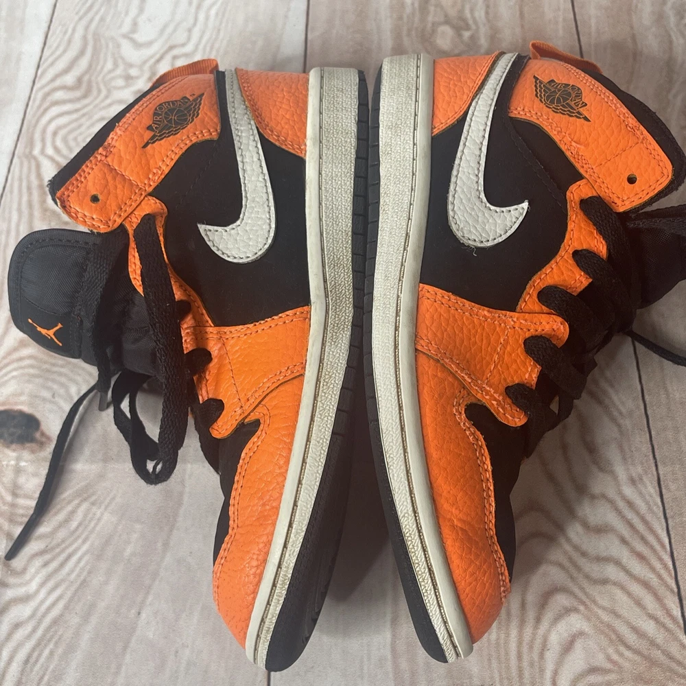 Nike Air Jordan 1 Retro Mid 640734-062 Black Orange Kids Shoes Size 2Y No Box. See photos for wear and tear. These shoes are good to very good quality. Some pulls here and there as well as medium tread left. Right foot has more wear on the heel than the left.