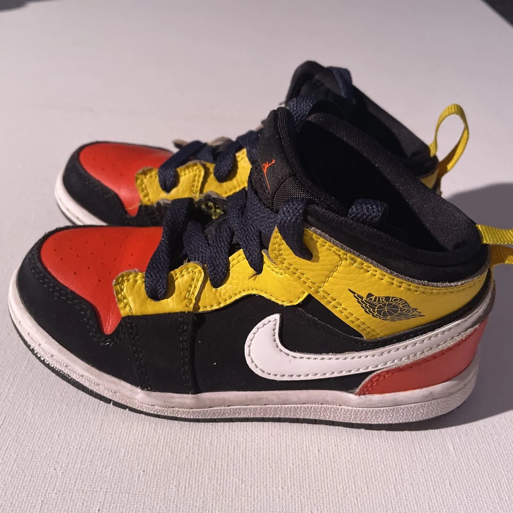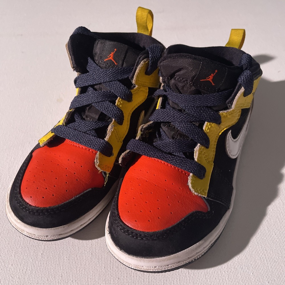 Nike Air Jordan 1 Retro Mid Kids Size 9C Black Yellow Orange White BQ6933-087. Excellent Condition. Thank you for looking. All offers are welcomed.
