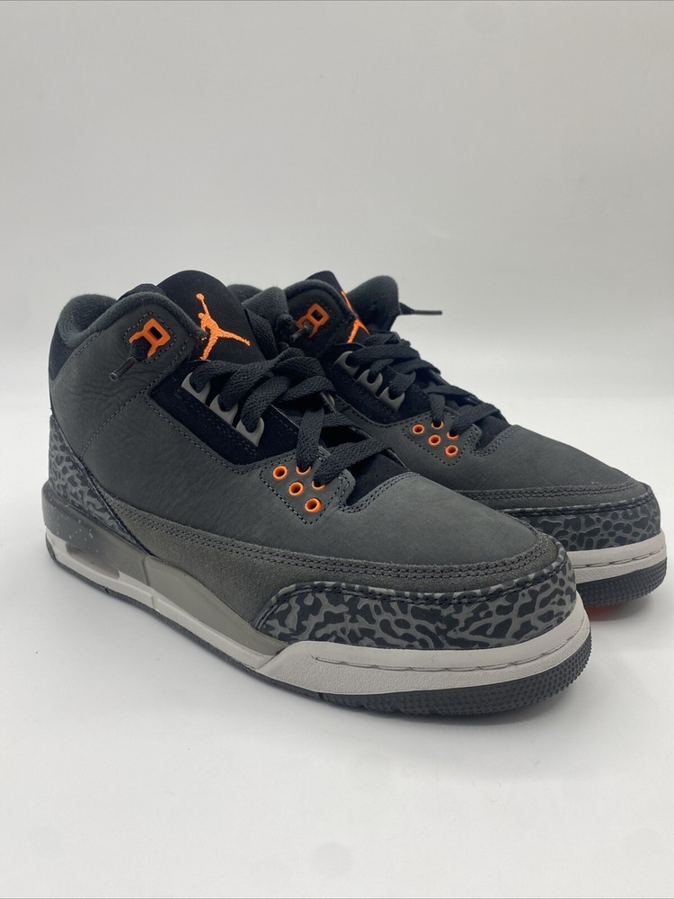 Elevate your sneaker game with the Nike Air Jordan Retro 3 Fear Pack in Gray and Orange. These stylish sneakers feature a Mid Top Shoe Shaft Style and a Lace Up Closure, making them perfect for any occasion, whether it's Activewear, Casual wear, or Workwear. The shoes are made of high-quality Leather and have a comfortable Fabric Lining Material and Insole Material. The Nike Air Jordan Retro 3 Fear Pack is designed for men and comes in a Standard Shoe Width. These sneakers are perfect for walking, school, and basketball, and are part of the Jordan product line. The shoes have a solid pattern and are not vintage or customized. The style code is DM0967-080, and the shoes are made in Indonesia. Get ready to step up your sneaker game with the Nike Air Jordan Retro 3 Fear Pack! Box missing lid