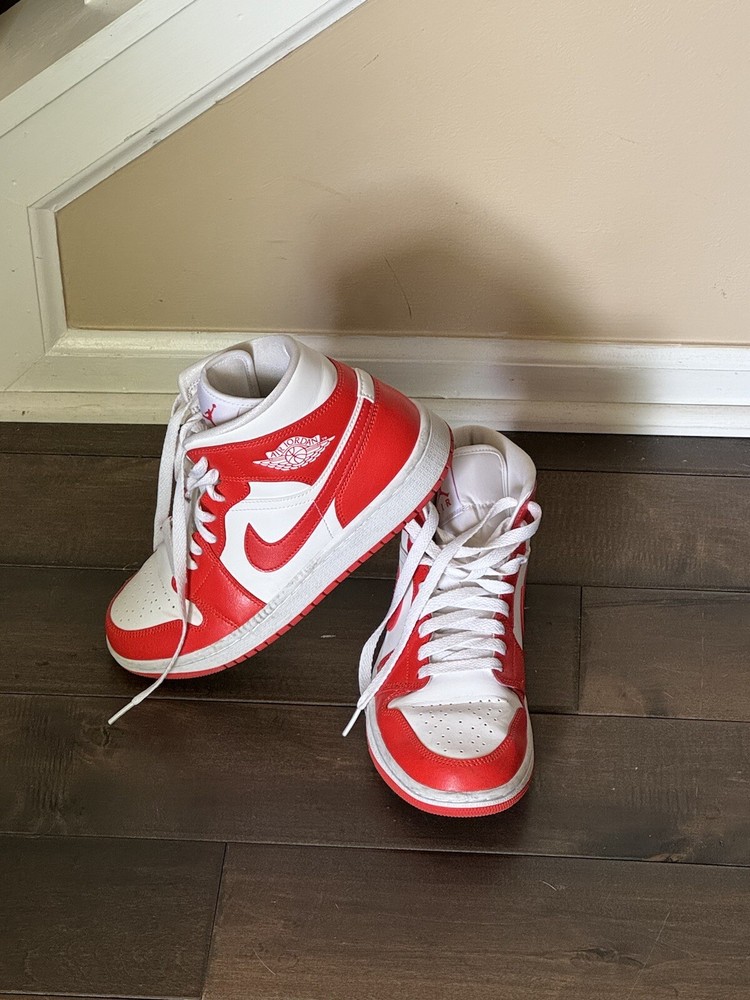 Nike Air Jordan mid size 8 women’s orange. Only worn a couple of times.