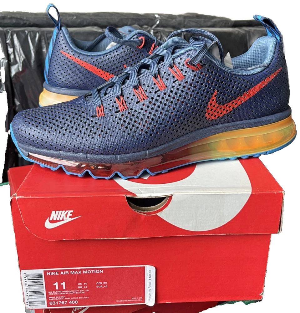 Elevate your sneaker game with these Nike Air Max Motion sneakers in a stylish mid navy blue and team orange colorway. Designed for men with a UK shoe size of 10, US shoe size of 11 and EU shoe size of 45, these low-top sneakers feature a standard shoe width making them perfect for athletic activities. The Nike Air Max Motion sneakers are part of the Nike Air Max product line and are modeled with the style code 631767-400. These sneakers were released in 2014 and are not customized or considered vintage. With the iconic Nike brand, these sneakers are perfect for men who are looking for a comfortable and stylish addition to their shoe collection.