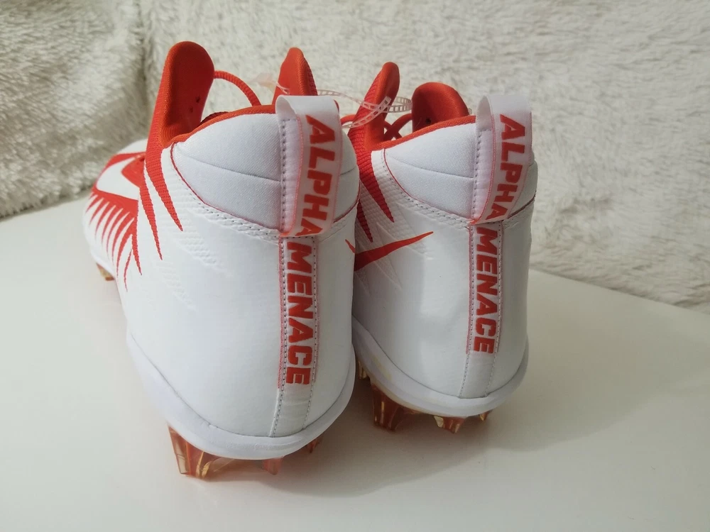 Nike Alpha Menace Pro Mid Football Cleats Size 17 White Orange 871451-811. Shipped with USPS Priority Mail. New without box Be sure to add me to your favorites. Buy with confidence Honest seller Happy to answer any questions you may have. Check out my our items Honest seller Happy to answer any questions you may have. Check out my our items
