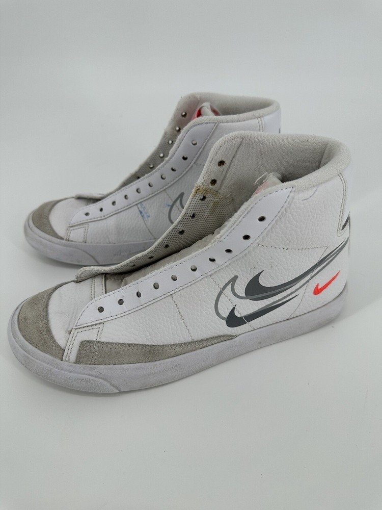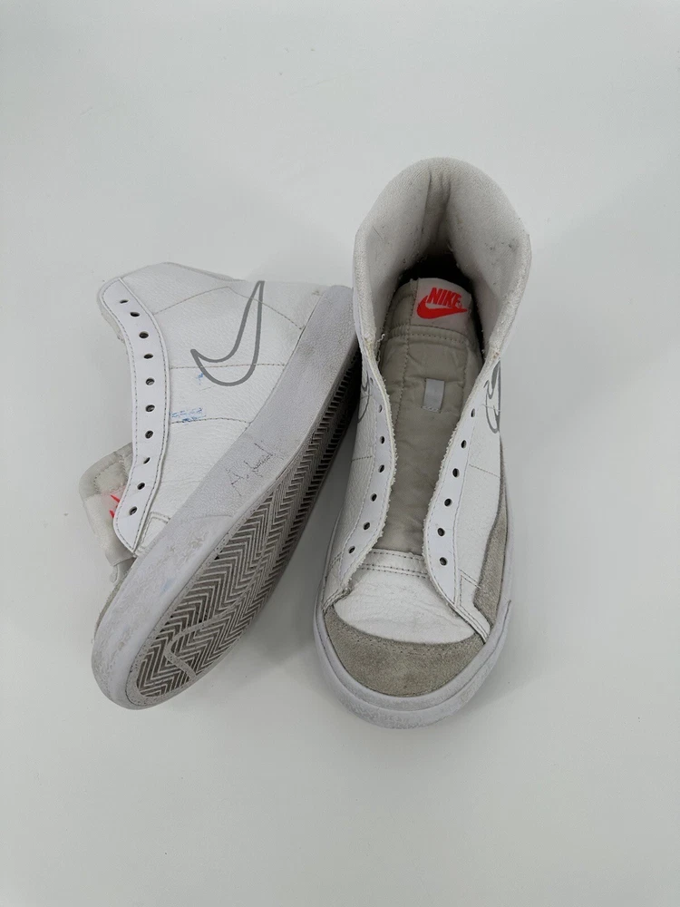 Super cute and comfy NIKE blazer high top sneakers size 5.5 Y Missing shoe laces and normal wear throughout (see pictures) Comes from smoke free and pet free home