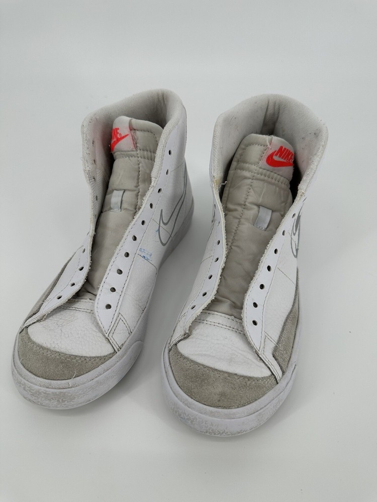 Super cute and comfy NIKE blazer high top sneakers size 5.5 Y Missing shoe laces and normal wear throughout (see pictures) Comes from smoke free and pet free home...