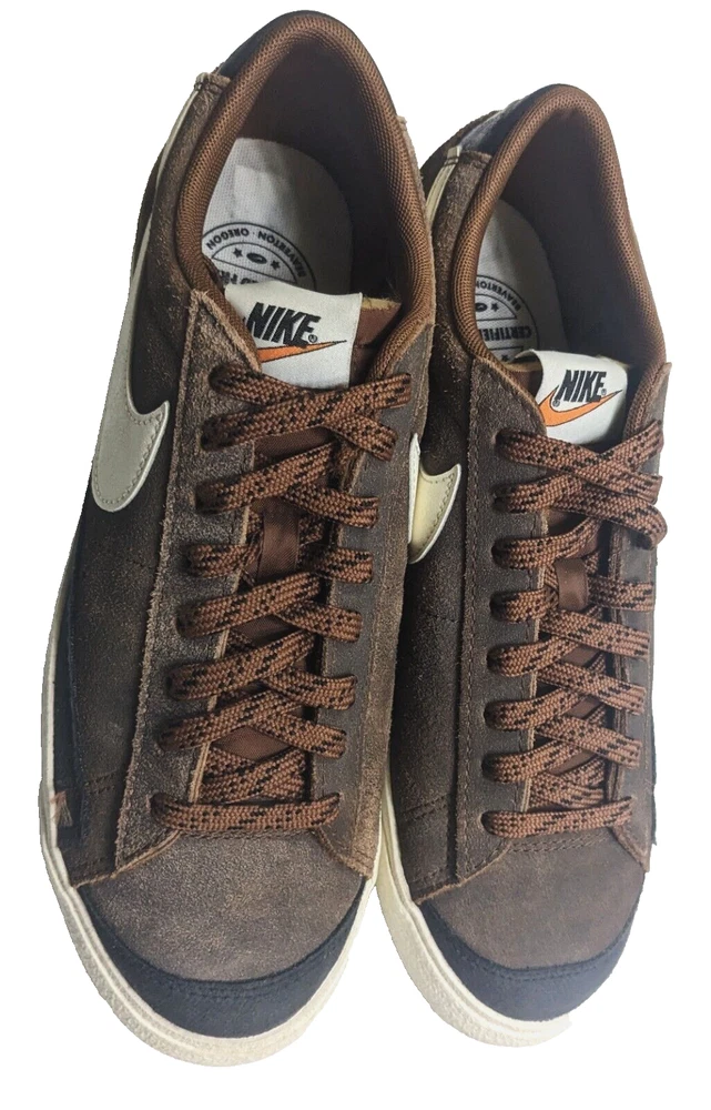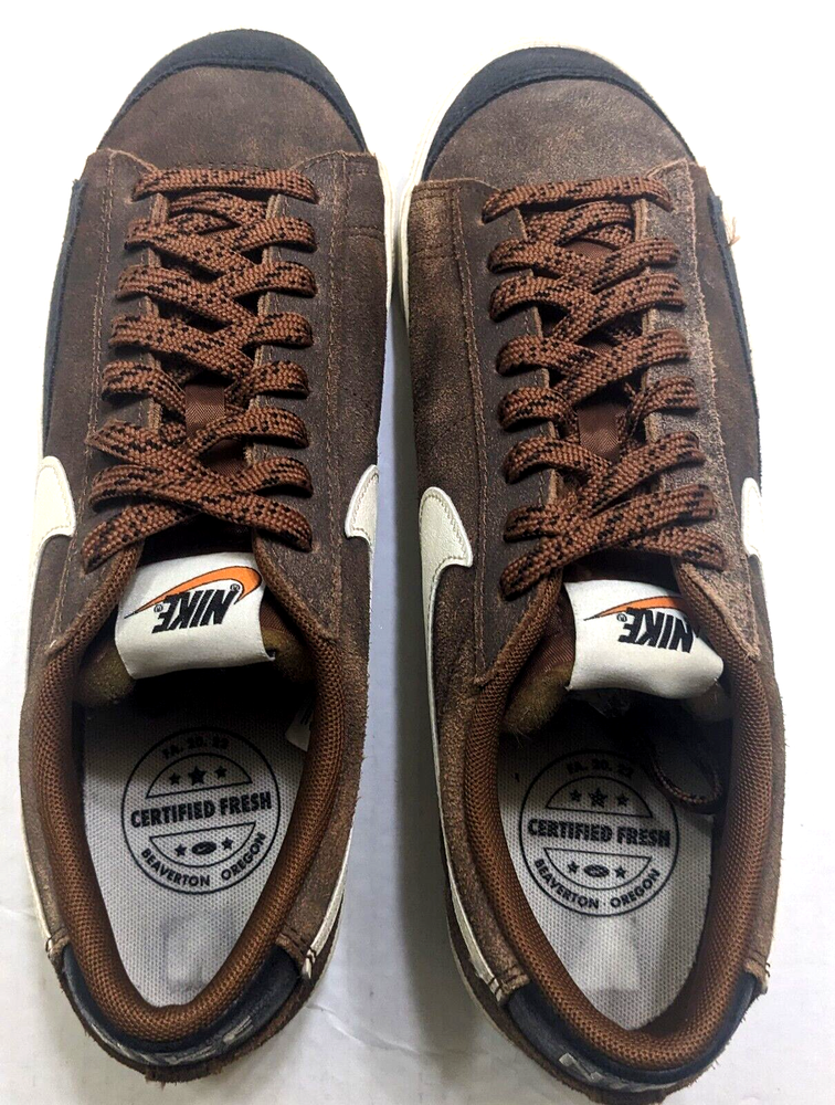Elevate your sneaker game with the Nike Blazer Low 77 Certified Fresh Premium 2022 in Pecan DW 4433-200. This stylish and comfortable pair of shoes is perfect for men who want to stay fresh and trendy. The low-top design, suede upper material, and athletic type make it a versatile choice for any casual or athletic outfit. The Nike Blazer Low is available in UK Shoe Size 8.5 and US Shoe Size 9.5. It features a unique style code DX4433-200 and belongs to the Nike Blazer product line. The shoes are brown in color and have a sleek and modern design that will make you stand out from the crowd. Little wear. In excellent condition