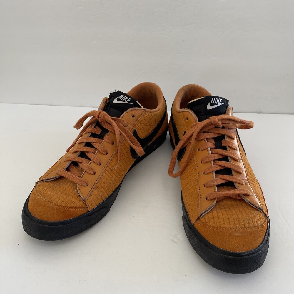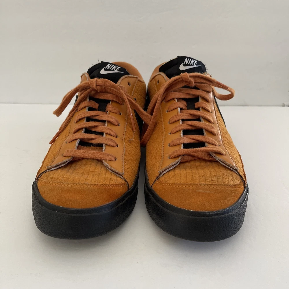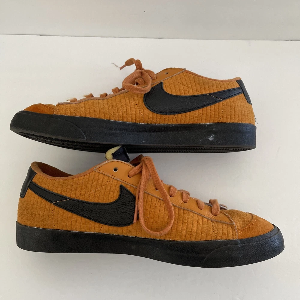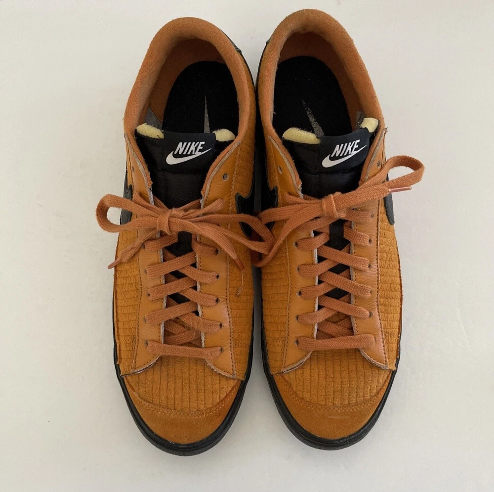 Elevate your sneaker game with these Nike Blazer Low 77 VNTG custom colorway shoes in a vibrant orange hue. Designed for both casual and athletic wear, these sneakers feature a low top shoe shaft style with a lace-up closure for a secure fit. The faux suede upper material is complemented by a solid pattern with the Nike Blazer product line branding on the side. The rubber outsole material ensures durability and the cushioned insole provides comfort for all-day wear. These sneakers are perfect for any season - from winter to summer, fall to spring. Available in US shoe size 14 and UK shoe size 13, these Nike Blazer 77 sneakers are a retro-inspired addition to any sneaker collection.
