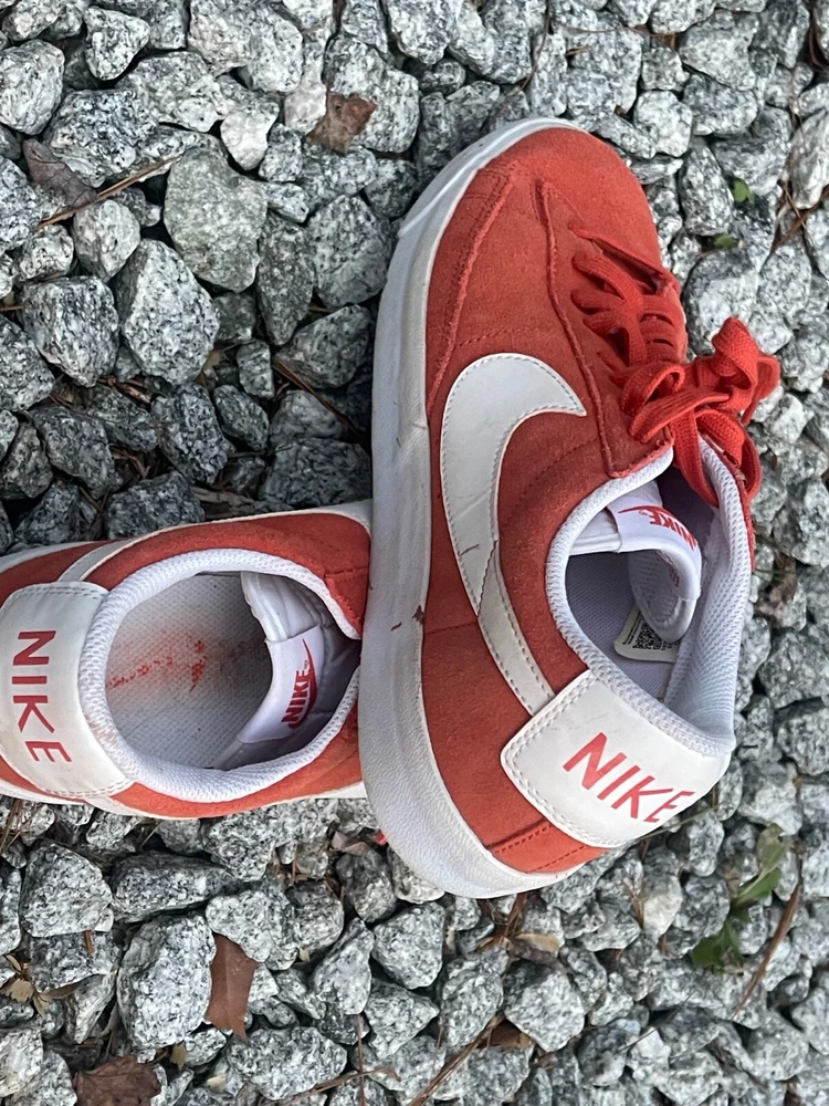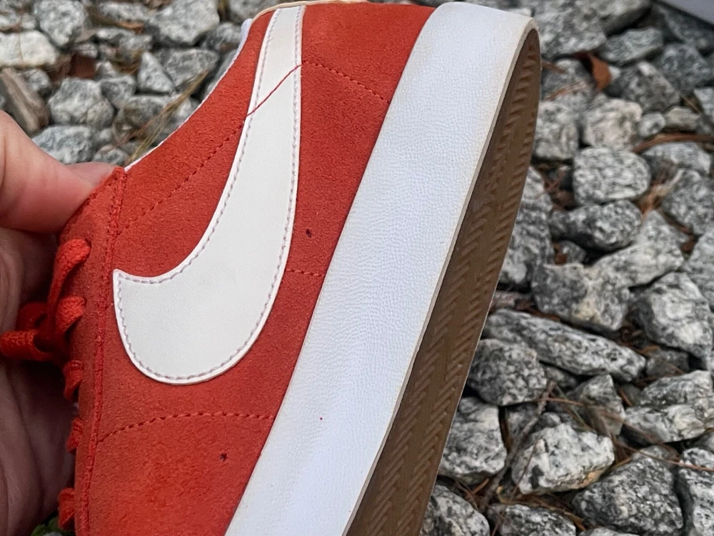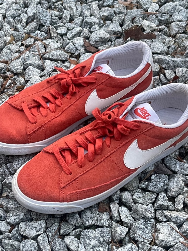 Pre-owned. Looks like they were worn only a couple times. No significant flaws. US Size 9 Elevate your sneaker game with these Nike Blazer Low Mantra Orange sneakers. Featuring a stylish low top design, these athletic shoes are perfect for any casual occasion. The CZ4703-800 style code and Nike Blazer product line add a touch of exclusivity to this sneaker.Crafted with a premium suede upper material, these sneakers are both durable and comfortable. The vibrant orange color and bold Nike branding make these sneakers a must-have for any sneaker enthusiast.