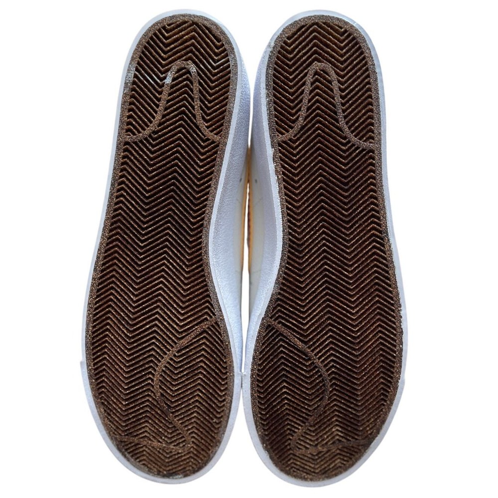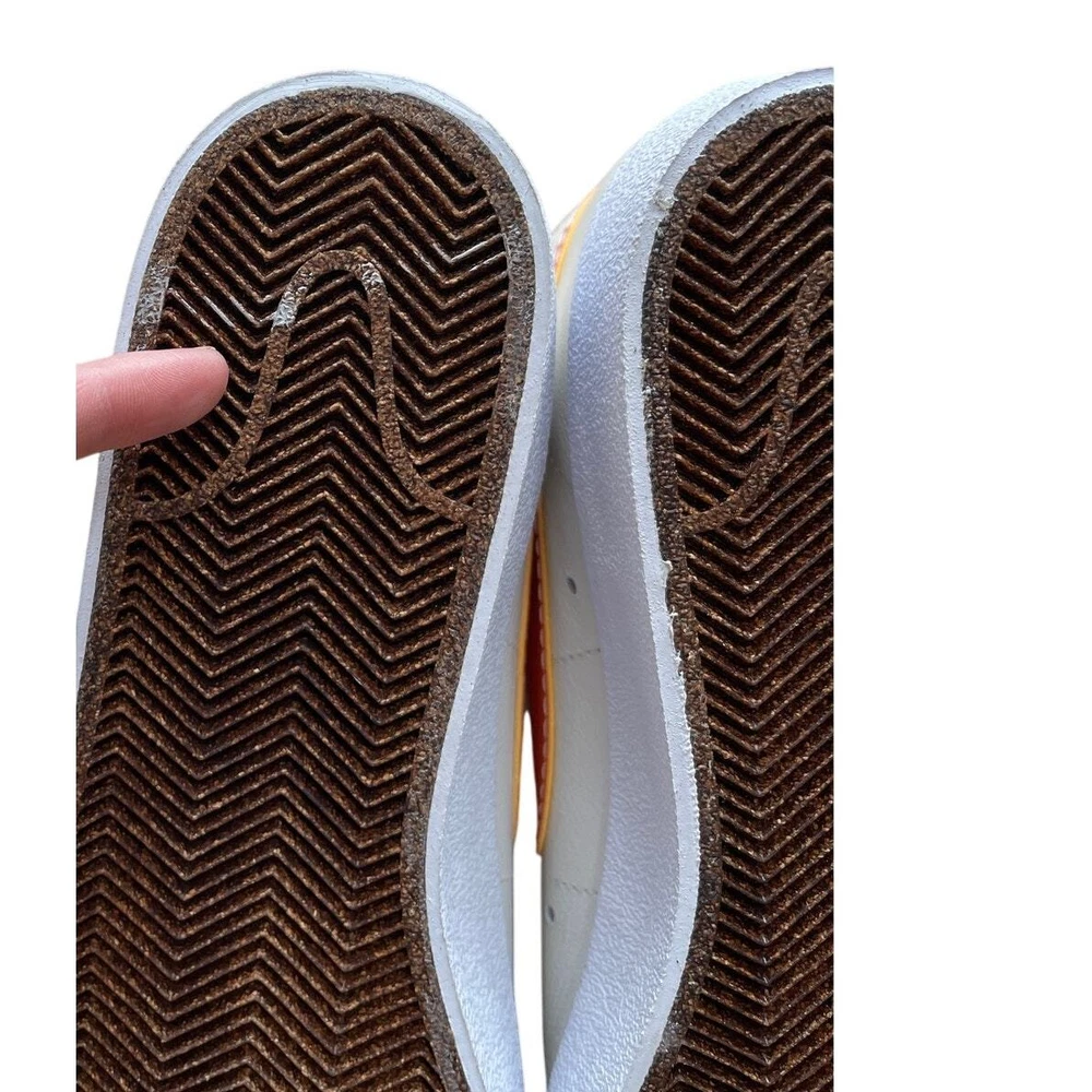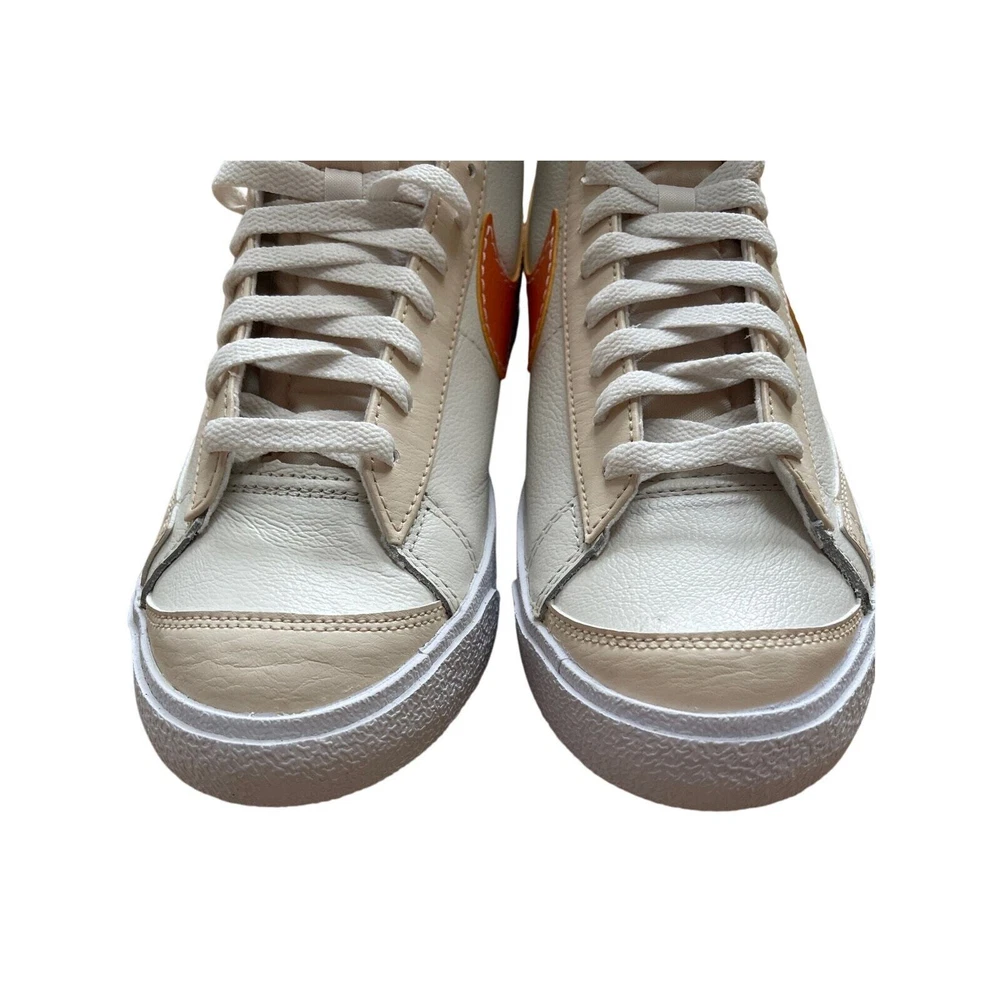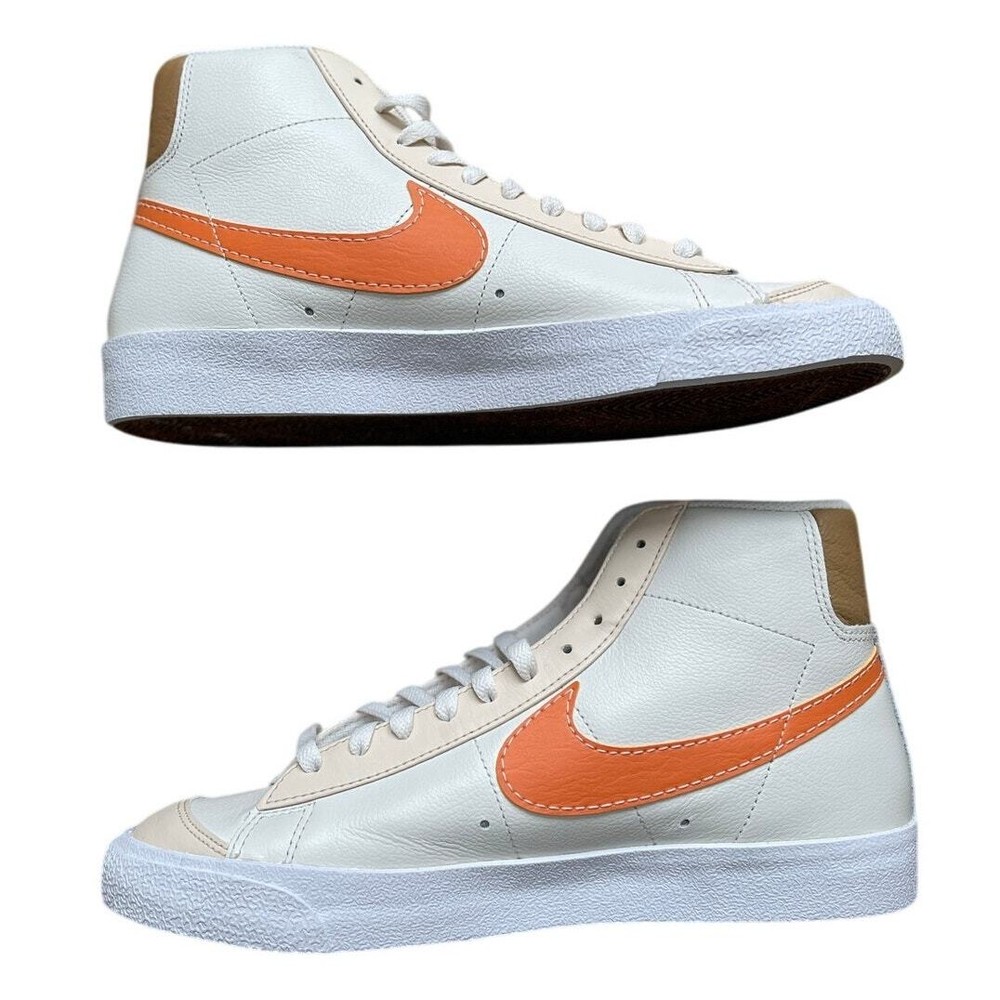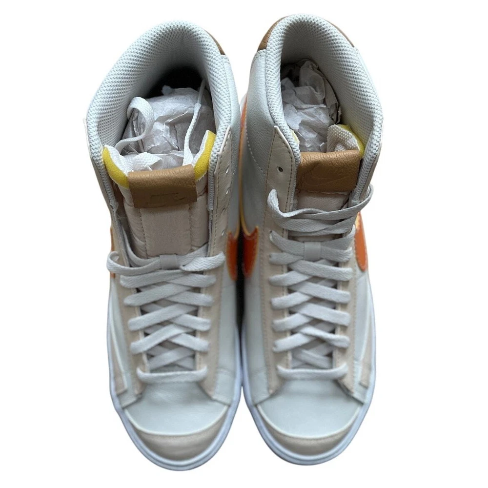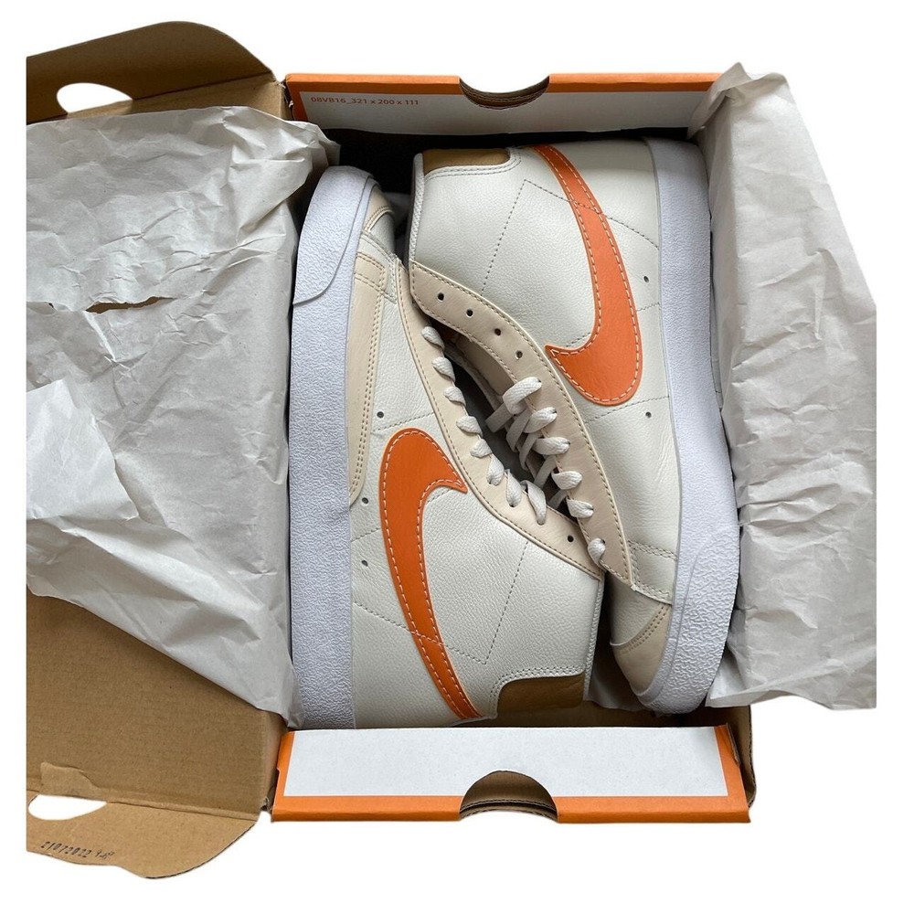 <![CDATA[<div>BRAND NEW IN BOX Nike Blazer Mid '77 Phantom/Hot Curry/Pearl White DQ7674 The Nike Blazer Mid ‘77 EMB makes an impression on any Blazer collection. The silhouette takes on a leather upper with additional leather accents that are seen at the tongue and spine. Thematic detailing arrives at the sock liners, while the foam midsole adds a comfortable component. A herringbone-traction rubber outsole wraps up the design. Authentic and inspected by Swoosh Size: Men's 9.5 (See measurement photos to ensure proper fit). Condition: Brand new in box; Tiny blemish on the sole (pictured).