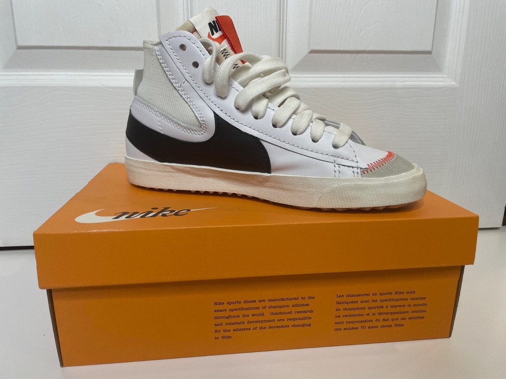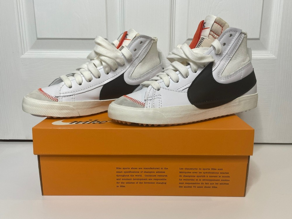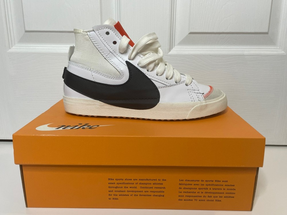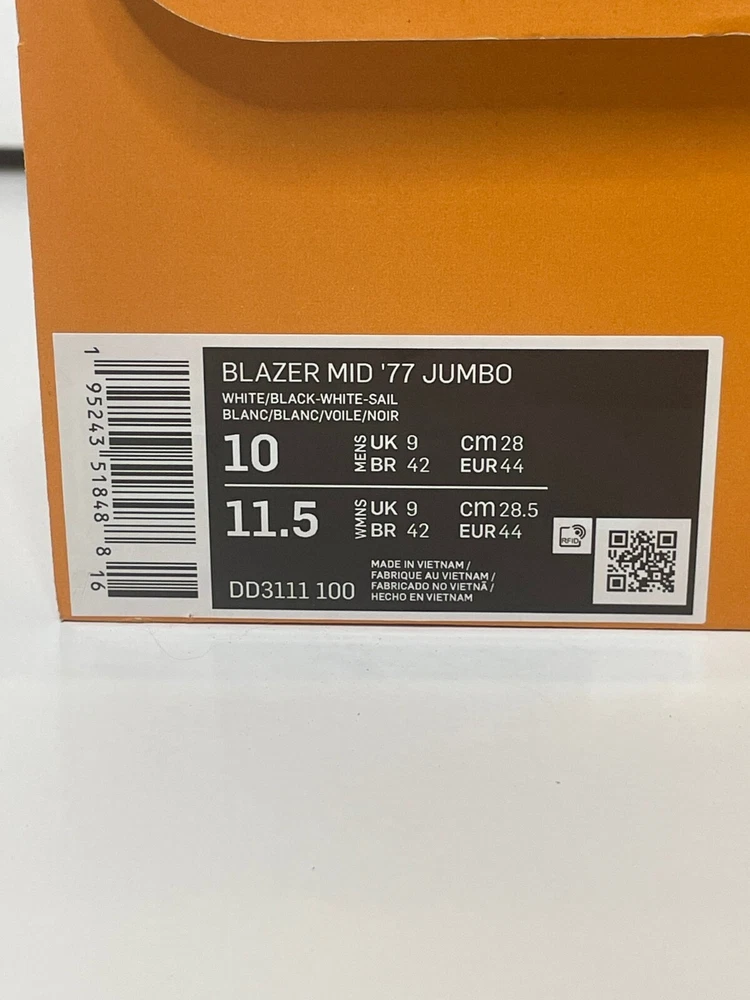 Like Brand New, Worn Only Once! Comes With Box Elevate your shoe game with these Nike Blazer Mid '77 Jumbo sneakers. Designed for men and available in a size 10, these shoes boast a stylish mid-top silhouette that pairs comfort with a classic sporty vibe. The white colorway keeps things simple and versatile, while the iconic Nike Blazer product line ensures quality and durability. With a shoe width that fits true to size, these athletic sneakers are ideal for a variety of activities, including gym training, running, jogging, and even casual walks. They feature a standard shoe shaft style and have been manufactured in Vietnam, ensuring both comfort and reliable performance across seasons such as summer, spring, and fall.
