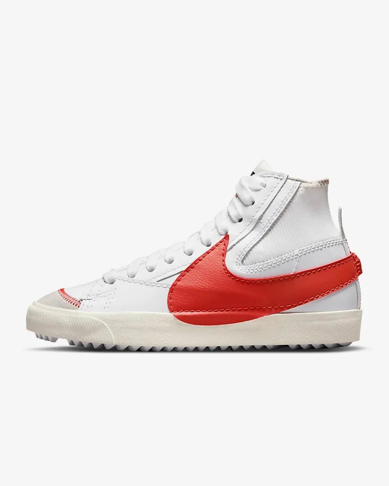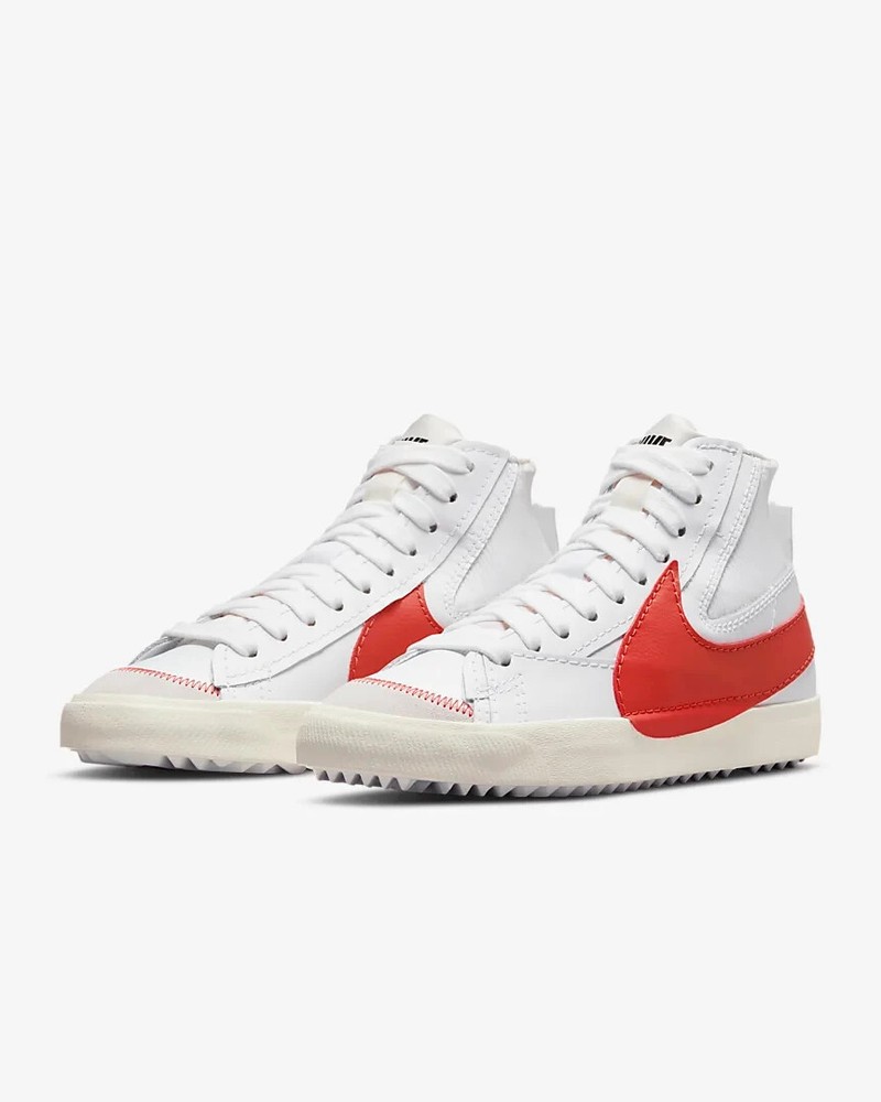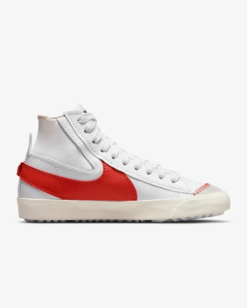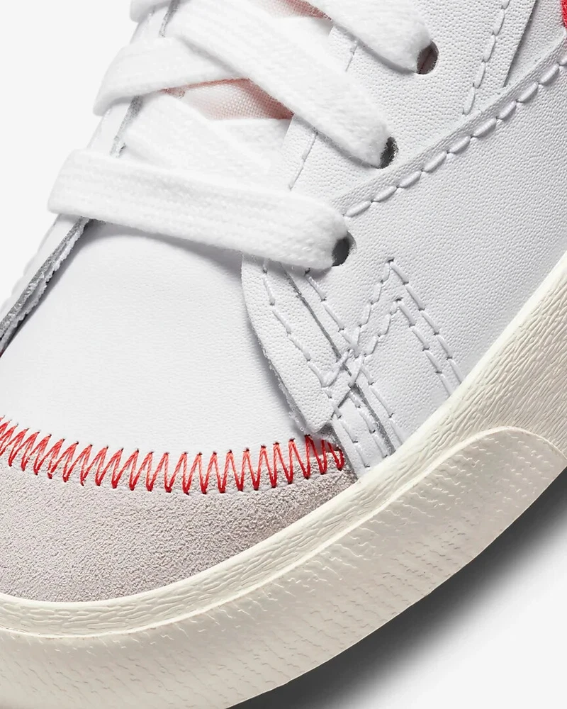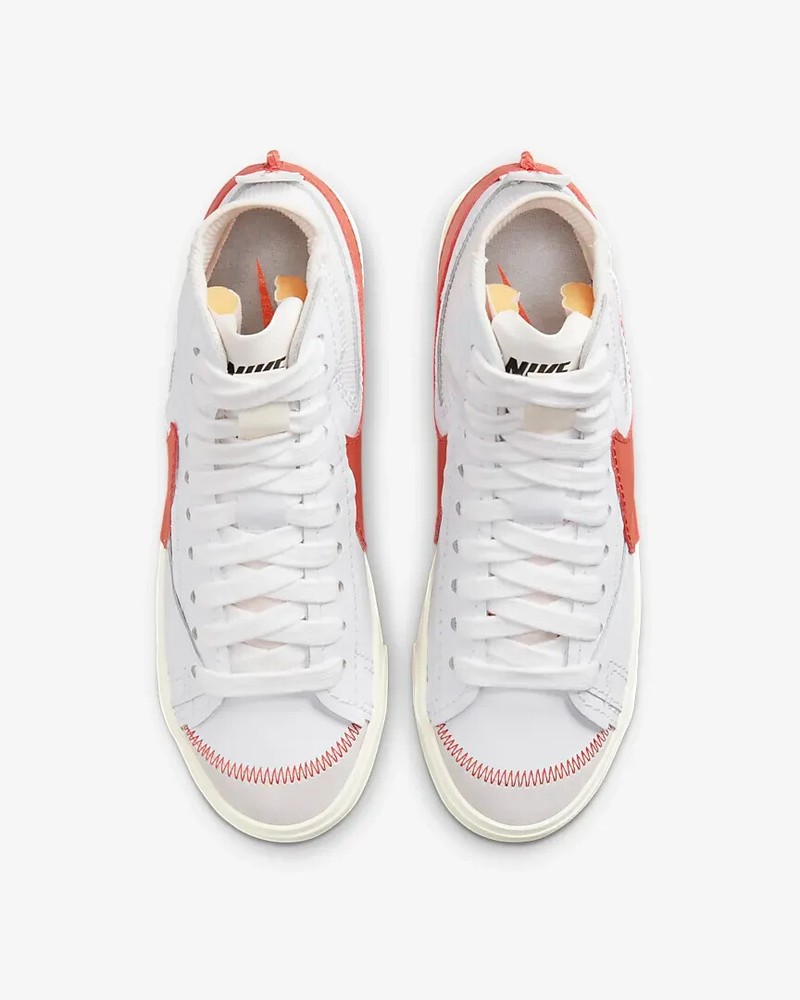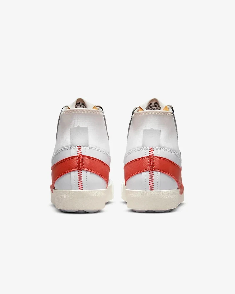EASY TO WEAR GETS BIG AND BOLD. They say, "Don't fix what works." We say, "Perfect it." The classic, streetwear superstar gets rethought with the Nike Blazer Mid '77 Jumbo. Harnessing the old-school look you love, it now features an elastic heel with corduroy-like texture and large pull tabs for easy on and off. The oversized Swoosh design and jumbo laces add a fun twist while the plush foam tongue and thicker stitching celebrate the iconic look that's been praised by the streets since '77. Benefits Elastic heel allows you to slip on and get going quicker while the exaggerated pull tabs on the back and tongue let you pull them on and off with ease. Oversized Swoosh design and jumbo laces that are easier to tie add a bold look to any outfit. Capturing the essence of the classic Blazer, the stitched leather overlays and soft suede accent on the toe add heritage hoops style. The extra-thick thread for the stitching enhances the look with a defiant touch. Raised herringbone pattern on the rubber outsole exaggerates the classic look. Product Details Thick 4 mm exposed foam tongue Jumbo laces Thick thread stitching Large pull tabs on heel and tongue Oversized woven label Shown: White/Sail/Total Orange/Mantra Orange Style: DH7690-100 Blazer Origins Originally introduced in 1972 as a basketball shoe, the Blazer has since transformed into a modern staple for skaters and sneakerheads alike. Maturing from a simple canvas high top to a leather mid top and casual low top, this shoe just gets better with age. BOX MISSING TOP The box condition is damaged (e.g. rips, tears, holes, stains, tape) The box is missing the original tissue or packing paper.