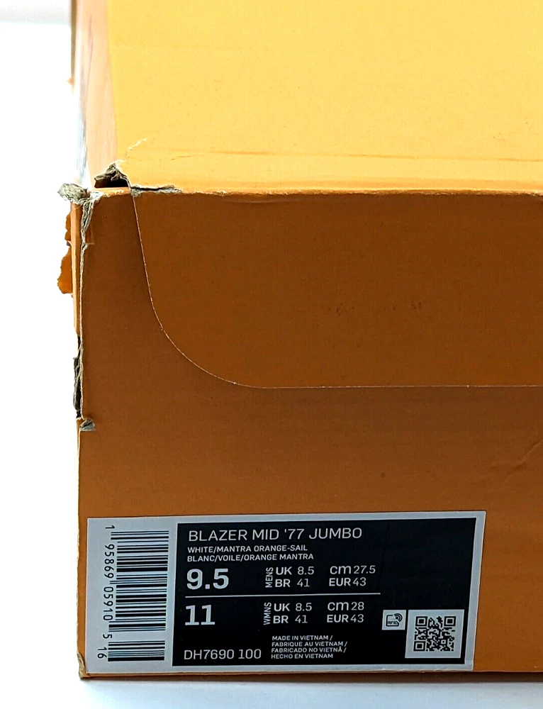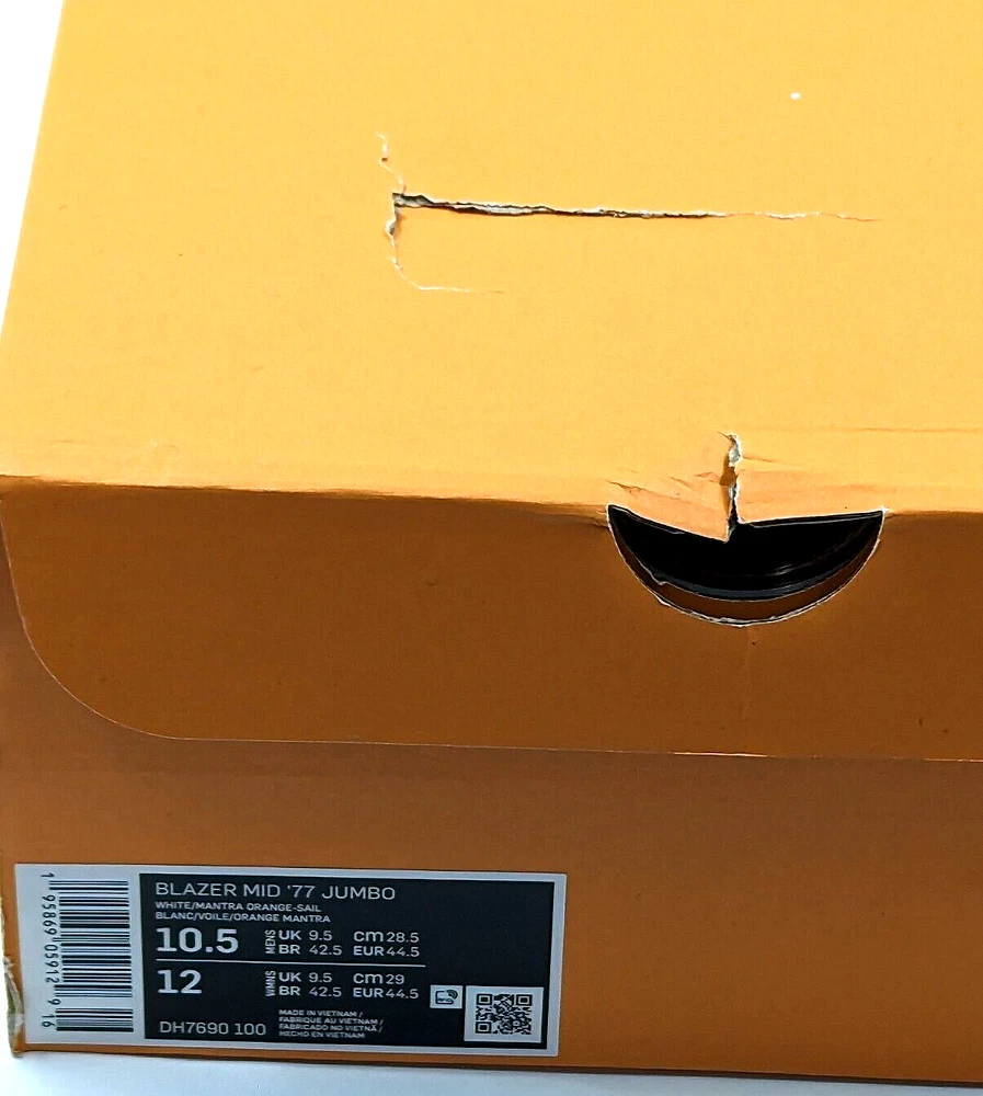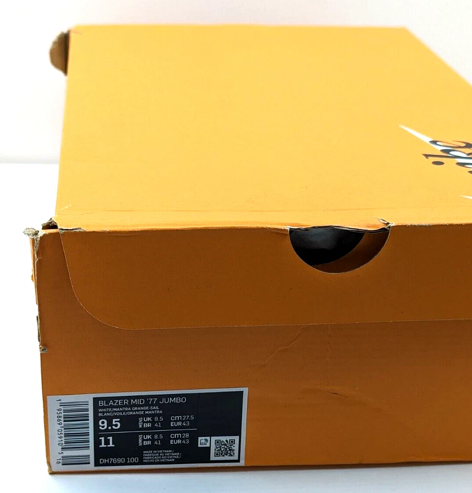Nike Blazer Mid '77 Jumbo 'White Total Orange' DH7690-100 M/10.5 W/12 Brand New With Original Box 100@ Authentic The shoe boxes and box lids may have dents, dings, rips, creases, or marks from storage and transport
