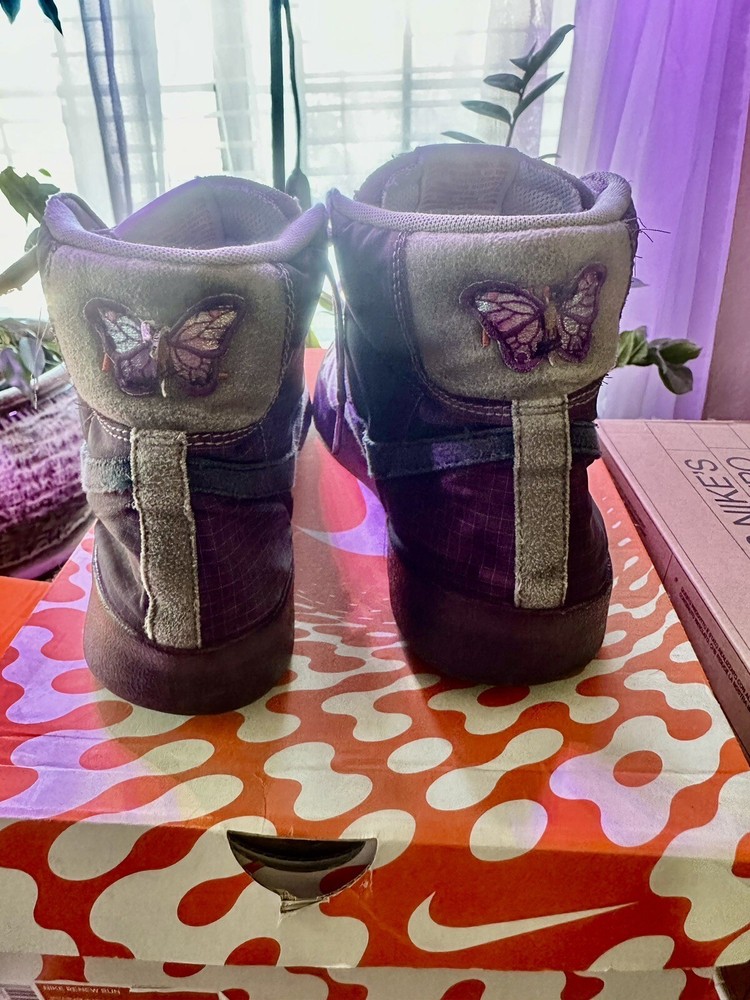 Used, but have all the tread on the bottom. They were left in a trunk with a jack and tire and kinda got a bit dirty. Could use a good cleaning…very rare color way with butterflies on the back....