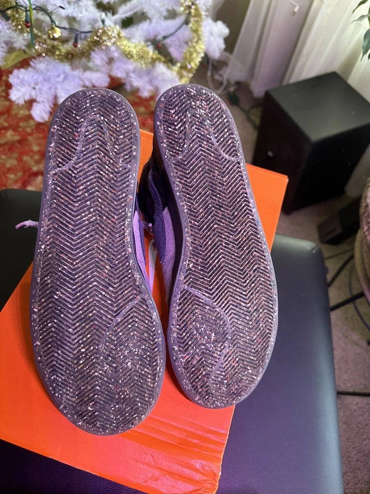 Used, but have all the tread on the bottom. They were left in a trunk with a jack and tire and kinda got a bit dirty. Could use a good cleaning…very rare color way with butterflies on the back.