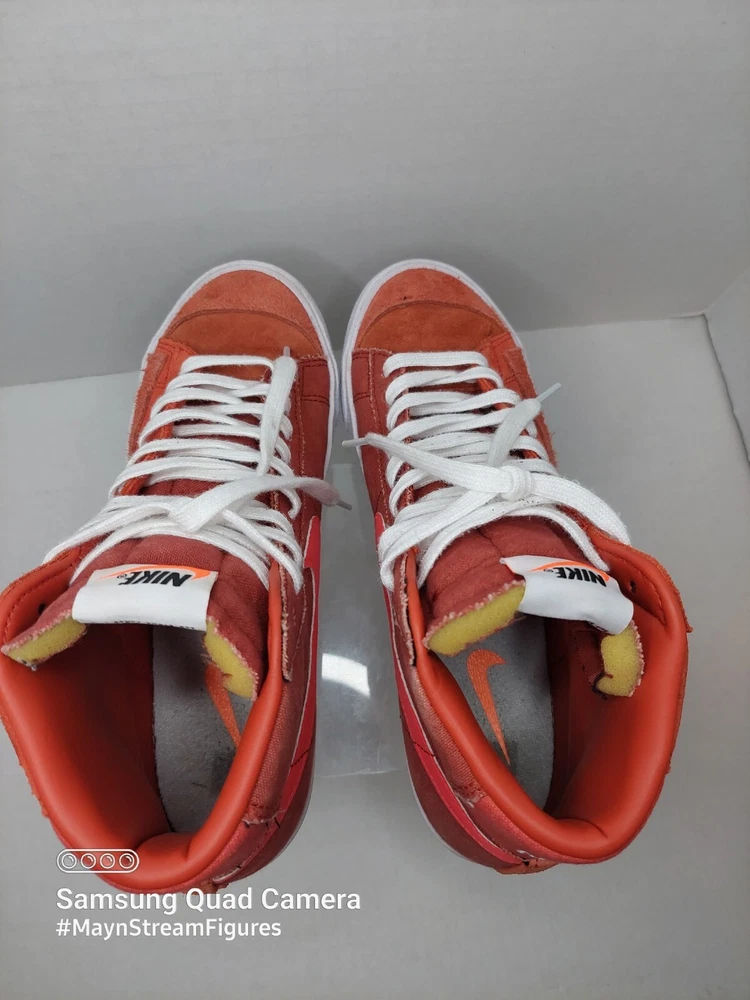 Nike Blazer Mid '77 VNTG Suede Mix Firewood Orange Men's sz 8.5 CZ4609 800. PLEASE READ DESCRIPTION THOROUGHLY BEFORE PURCHASING AS IS SALE NO RETURNS Shoes come as shown in pictures. Preowned shoes in very good physical condition. Soles attached and no peeling. Some light to medium dirt discoloration and scuffs to soles. Some light dirt discoloration/ light spots to tongue and shoe canvas/suede. Insoles have signs wear. Light toe crease. NO BOX INCLUDED . Please see pictures for quality and feel free to ask me any questions. No international shipping sorry. MaynStreamFigures RETURNS /PAYMENT/ OFFERS / INTERNATIONAL SHIPPING policies: Sorry NO RETURNS on preowned, used, or opened items. These items are considered to be as is items. Upon purchasing this item you have agreed to my no return policy on these items. The only returns on preowned items accepted will be for items received damaged due to improper packing (not mail mishandling) or not as described in description or in messages. Preowned returns are at the cost of buyers and will have to be inspected before refund is given. Order canceling will only be allowed if done within 3 hours of purchase with messages asking to cancel and the reason. All paid for orders asking to be cancelled will subjected to a 20% restocking fee. Since its becoming way too frequent with order canceling and reason being the cat did it or my kids were playing with my phone. We will no longer take the hit in wasted time and listing space/fees due to this. New items can be returned in 5 business days for partial return. 20% restocking fee will will apply. Payment should be immediate but is allowed by Ebay 48hrs. Any items not paid for in 48hrs will automatically have unpaid item cases opened. After 4 days of no payment / communication the item will be relisted. The buyer will be blocked and the case will be closed at the allotted time. Offers have an auto decline set. Please only make reasonable offers. Dont waste your time and mines. Take into factor of listing fees, materials, paypal fees, time and the item itself when making an offer. If your offer was auto declined, please dont message it to me. International shipping is not offered but may be an option if askedbefore trying to purchase. International sales are AS IS ALL SALES FINAL NO RETURNS.