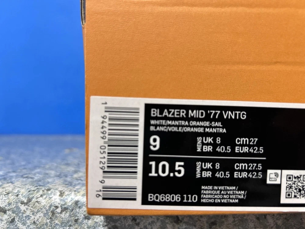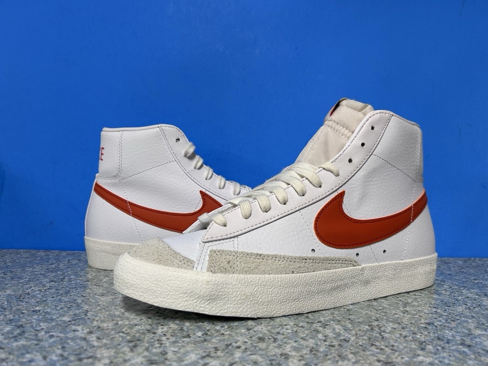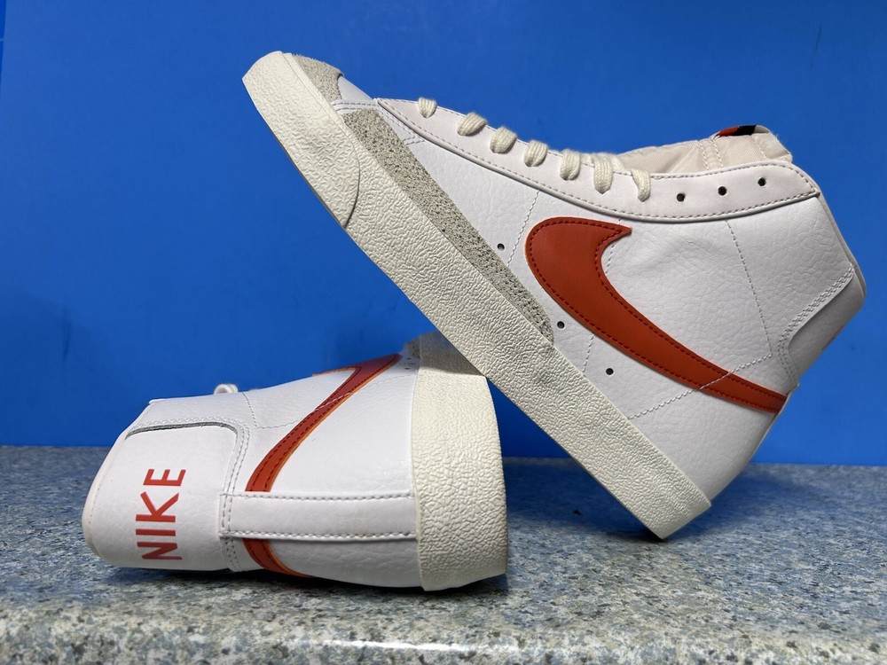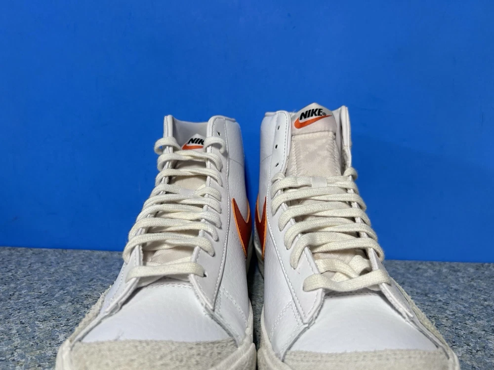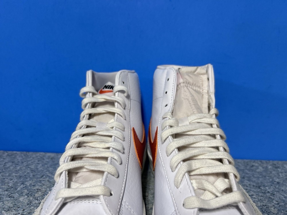 NEW WITH BOX MISSING LID The Nike Blazer Mid '77 Vintage in White and Mantra Orange is a stylish sneaker designed for men. Featuring a mid-top shaft style and made with leather upper material, these athletic shoes are part of the Nike Blazer product line. The unique color combination of white and orange adds a vibrant touch to the classic design, making them a fashionable choice for casual wear. This pair, with style code BQ6806-110, is in a US shoe size 9. ALL SHOES THAT COME WITH BOX WILL HAVE THE TOP LID MISSING OR B-GRADE BOX!!!! NO RETURNS BECAUSE YOU DIDN’T READ WARNING ABOUT BOX MISSING LID!! SOME SHOES DO COME WITH THE LID. IF YOU NEED TO KNOW FOR SURE SEND A MESSAGE! Offers welcome! Bundle to save more! Returns accepted if items shipped are shipped back before dead line! Items must be unused and sent back in the same protection they were sent out . All returns are subject to a 15% restocking fee and if shoes come back used you will be charged the average cost of the shoe used. All shoes directly from the supplier or authorized retail store! 100% authentic!!! ALL CLOTHING SALES ARE FINAL!! ALL CLOTHING SALES ARE FINAL!! ALL CLOTHING SALES ARE FINAL!! NO RETURNS ON INTERNATIONAL SHIPPING! UNPAID ITEMS WILL BE SUBJECT TO EBAY FEES!!!