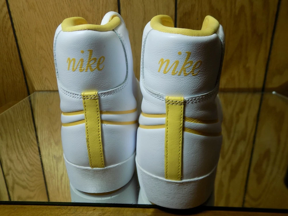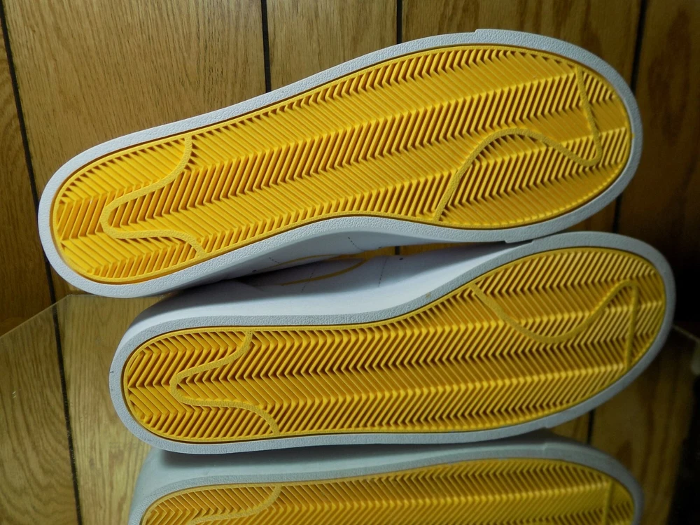 Here are a brand new pair of Nike Blazer Mid White Leather, Orange Swoosh Men Size 10 CJ3643-100. The lid on the box is missing. Box is slightly damaged...
