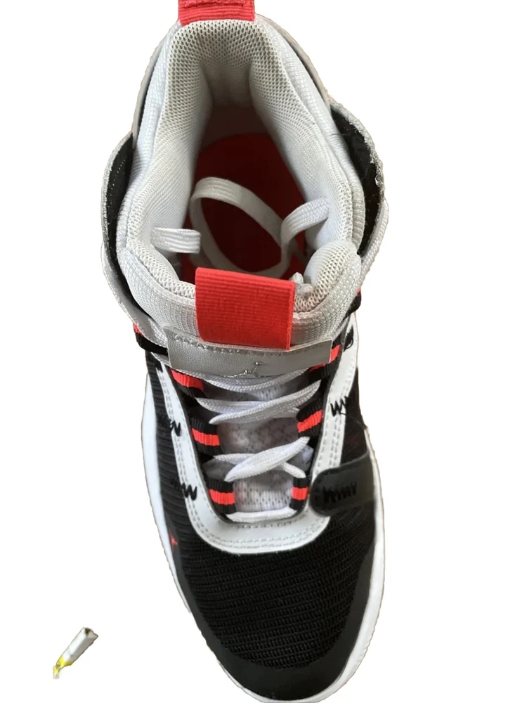 Nike Boys 6.5Y Air Jordan Jumpman White Black Orange Basketball Shoes Mid Top....