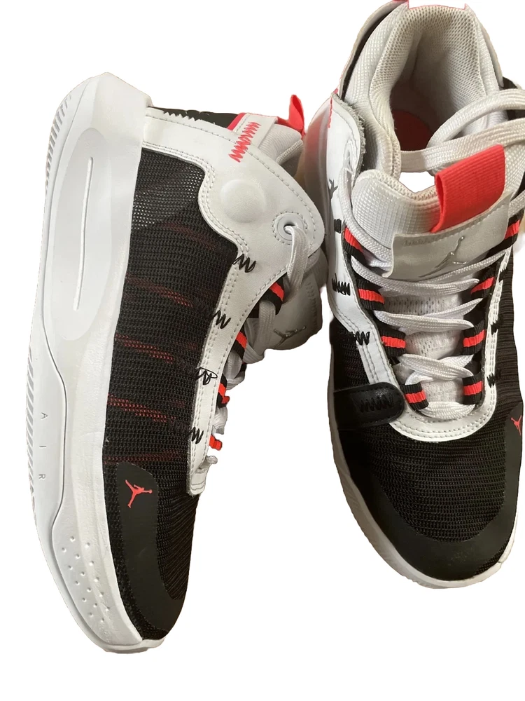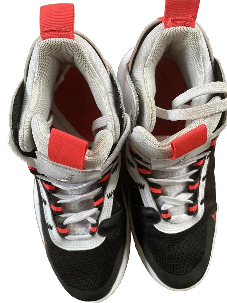 Nike Boys 6.5Y Air Jordan Jumpman White Black Orange Basketball Shoes Mid Top.
