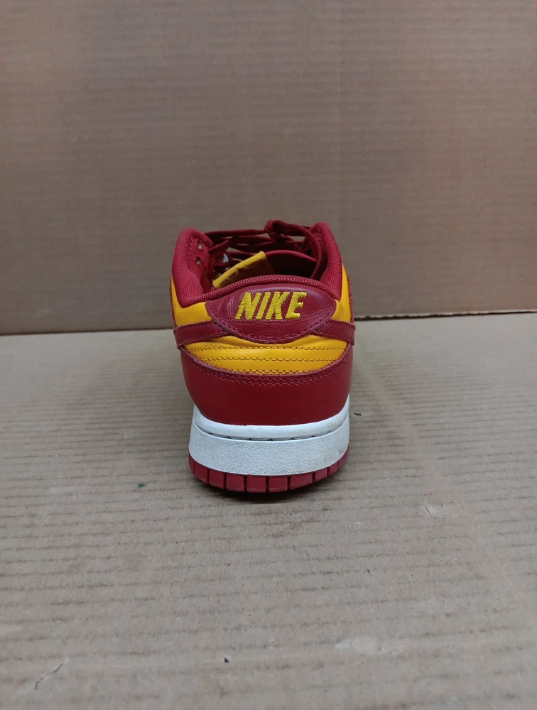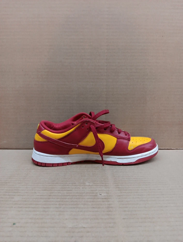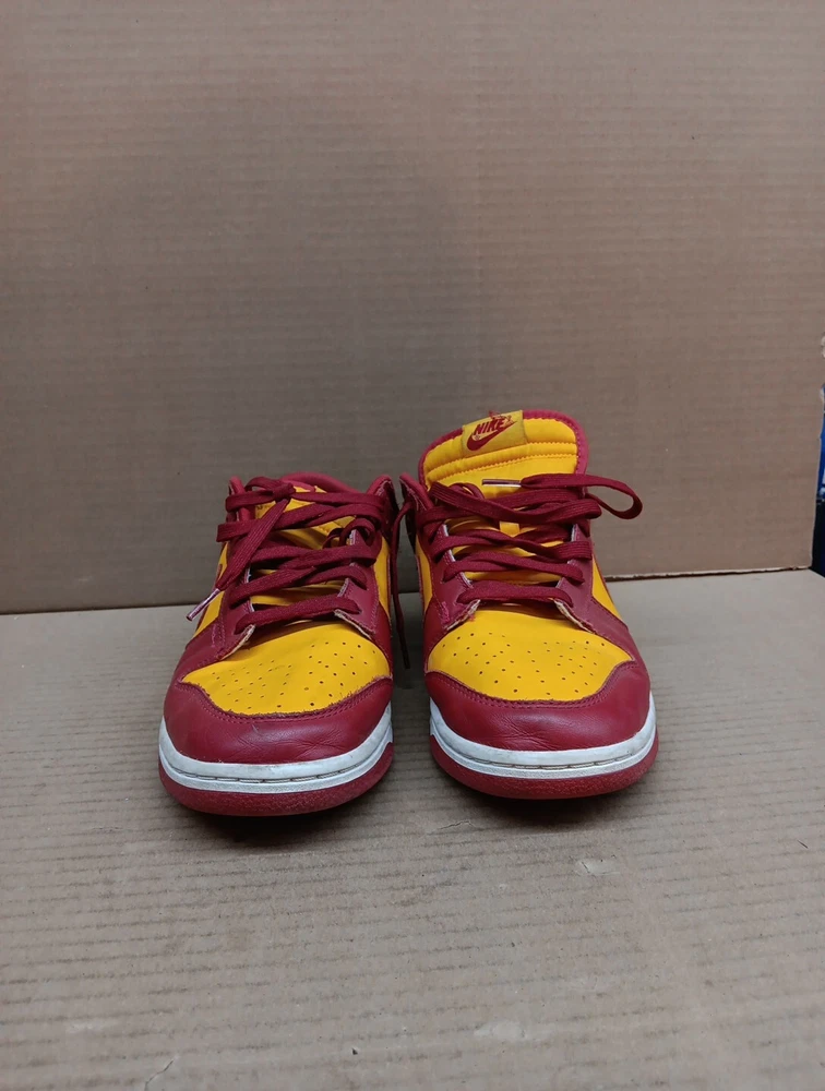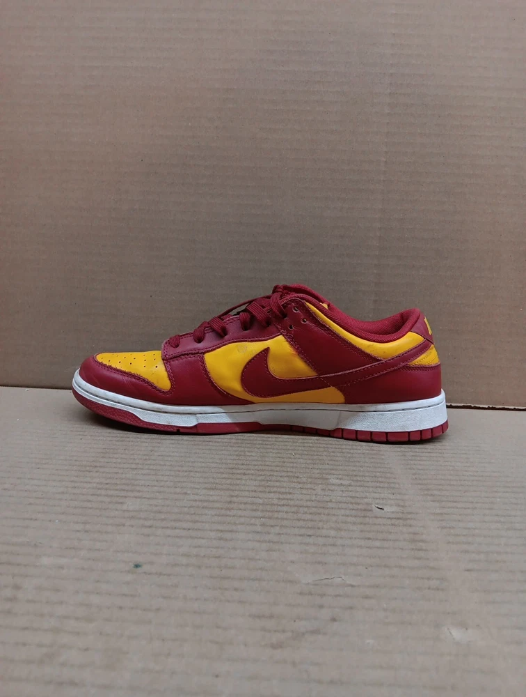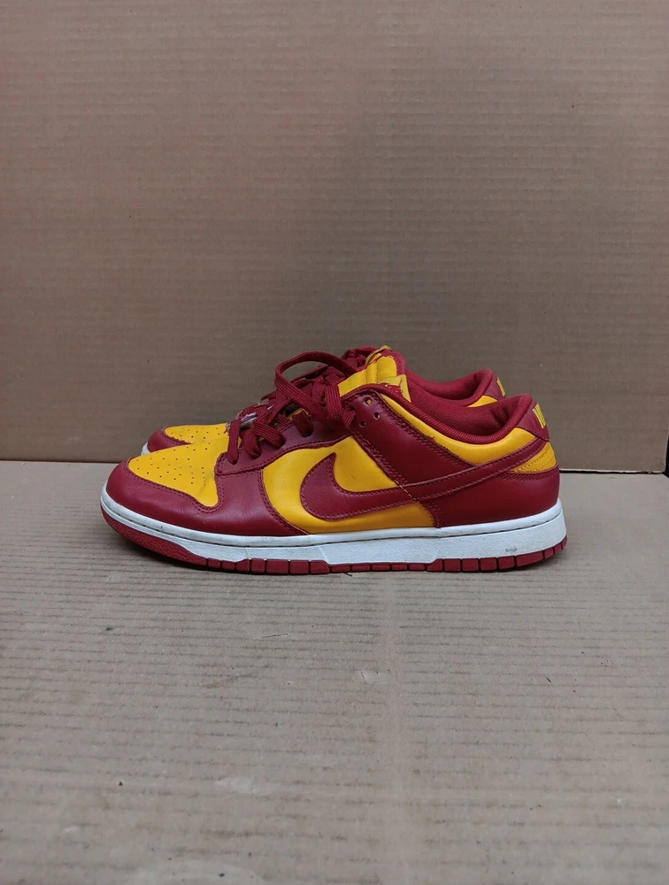 The shoes are pre-owned and have stain marks at the insole. There is no original box for the shoe. Step up your sneaker game with these Nike Dunk Low Mids in a bold orange/red/white colorway. These stylish sneakers feature a comfortable low top design and are perfect for any athletic activity. The Nike Dunk Low model is a part of the popular Nike Dunk product line and is known for its durability and high-quality construction. Crafted for men, these sneakers come in a size 11.5 and are perfect for any casual or sporty occasion. The sneaker's brand name, Nike, is synonymous with style and quality, making these sneakers a must-have for any fashion-forward individual. Add these Nike Dunk Low Mids to your collection today and step out in style.