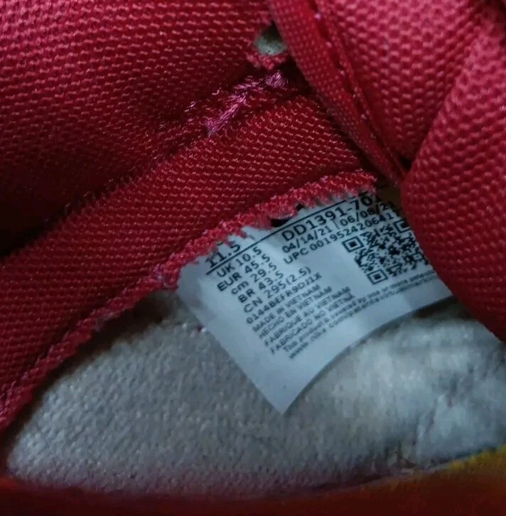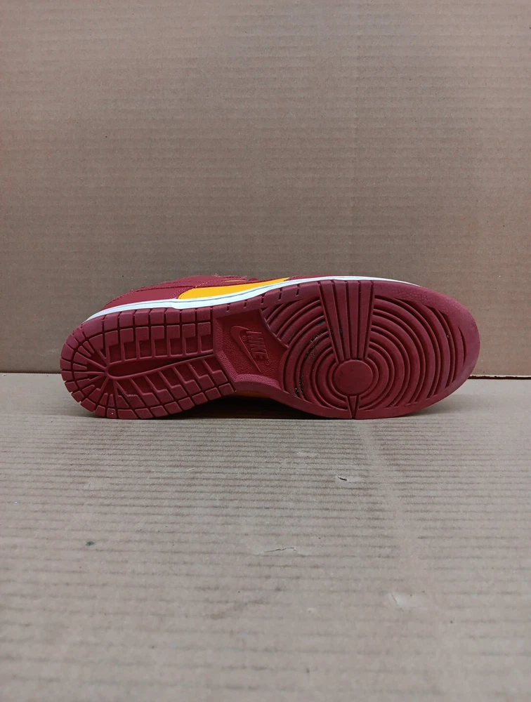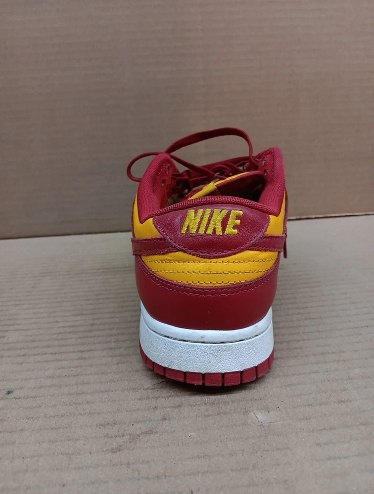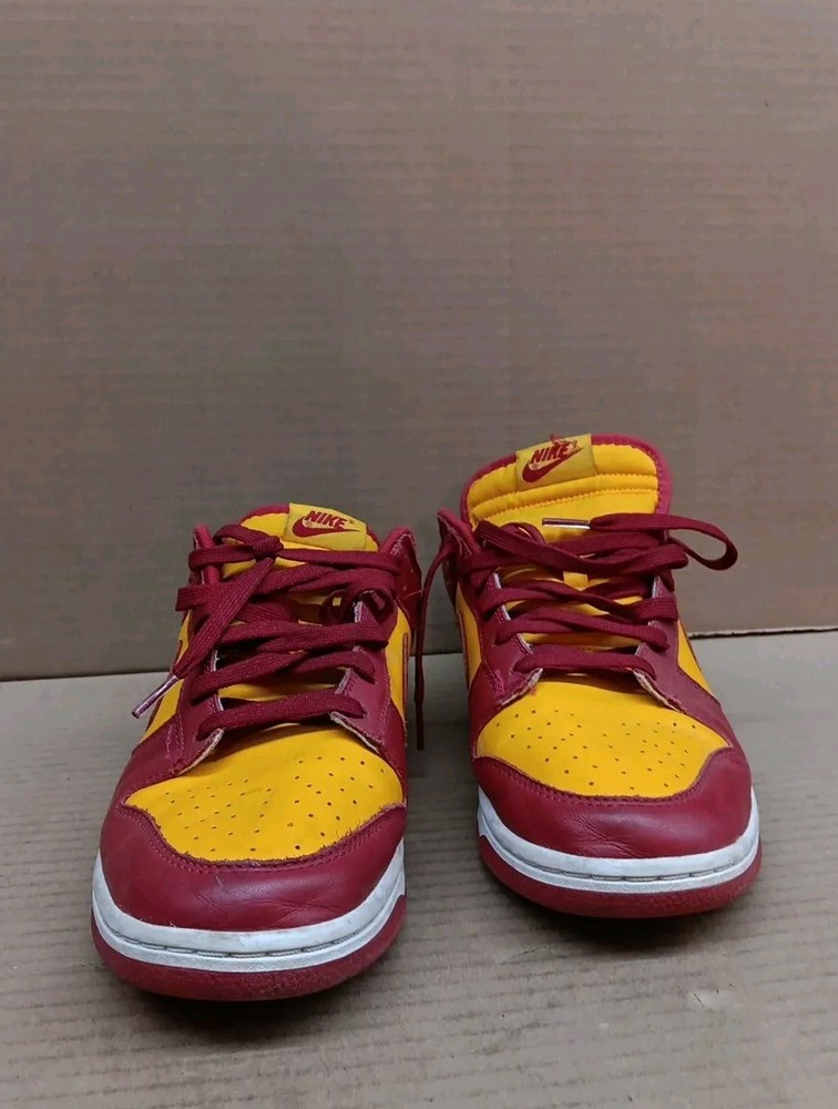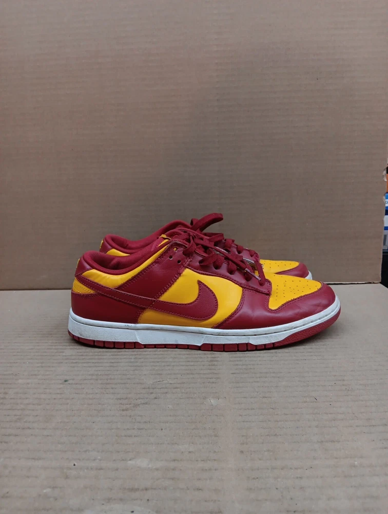 The shoes are pre-owned and have stain marks at the insole. There is no original box for the shoe. Step up your sneaker game with these Nike Dunk Low Mids in a bold orange/red/white colorway. These stylish sneakers feature a comfortable low top design and are perfect for any athletic activity. The Nike Dunk Low model is a part of the popular Nike Dunk product line and is known for its durability and high-quality construction. Crafted for men, these sneakers come in a size 11.5 and are perfect for any casual or sporty occasion. The sneaker's brand name, Nike, is synonymous with style and quality, making these sneakers a must-have for any fashion-forward individual. Add these Nike Dunk Low Mids to your collection today and step out in style.