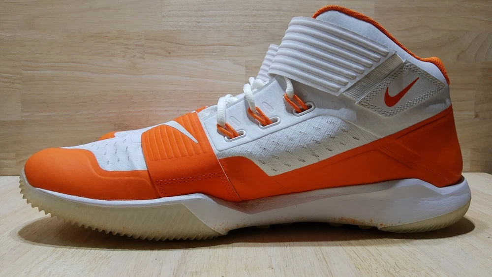 Nike Force Savage Turf Mid Football Cleats Men's Size 15 White Orange AQ8130-100 Lightly used pre-owned condition No major flaws or blemishes Elevate your football game with these Nike Force Savage Turf Mid cleats. Designed for the player who demands speed and agility, these pre-owned cleats are crafted with a white and orange colorway that is sure to stand out on the field. With a size 15 and medium width, these cleats will fit comfortably on any player. These Nike Force Savage Turf Mid cleats are perfect for any football player looking for a reliable and stylish cleat. The cleats are specifically designed for the sport of football with its durable and supportive construction. The AQ8130-100 model number ensures that you are getting a genuine Nike produc