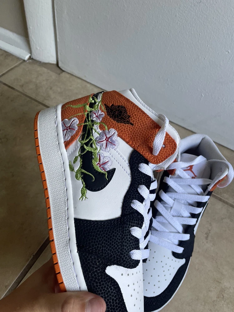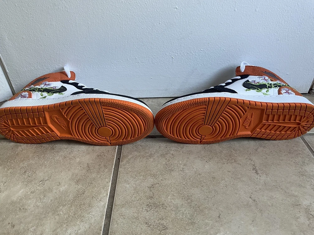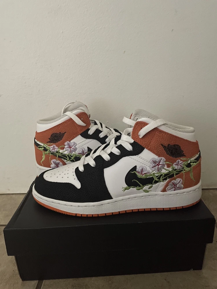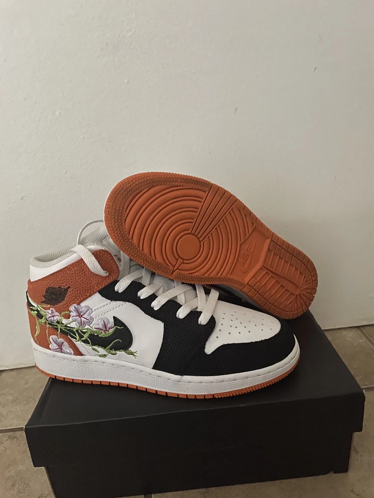 Nike Jordan 1 Mid Basketball Blossom Sneakers in Youth Size 5. Worn once, in like-new condition. Sneakers come with original box and a set of crease protectors.