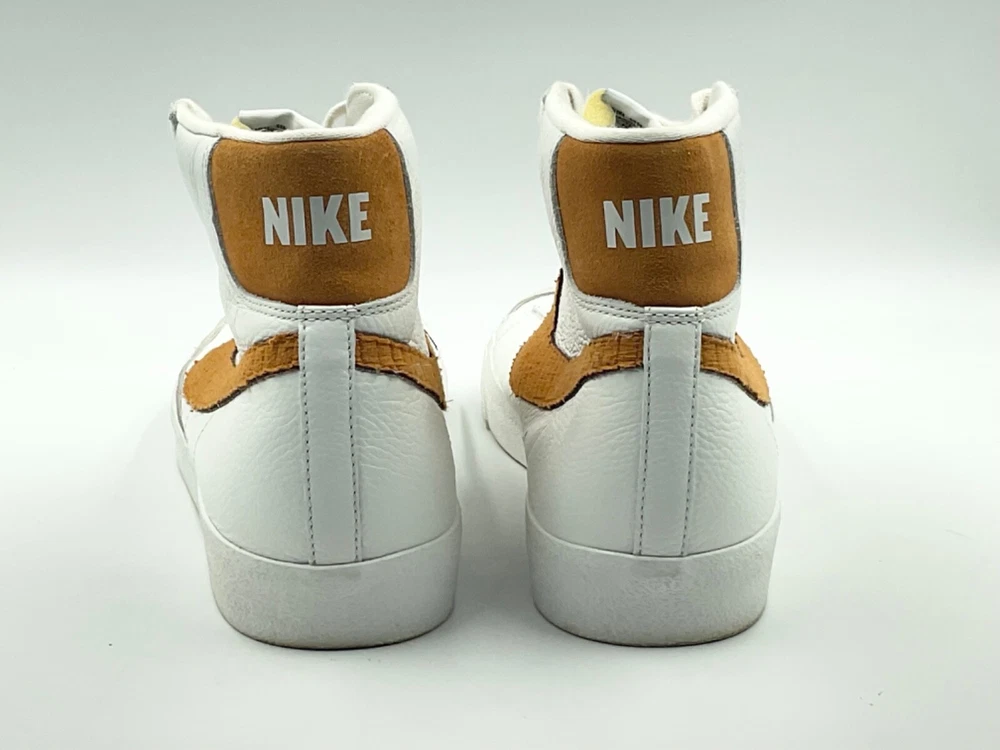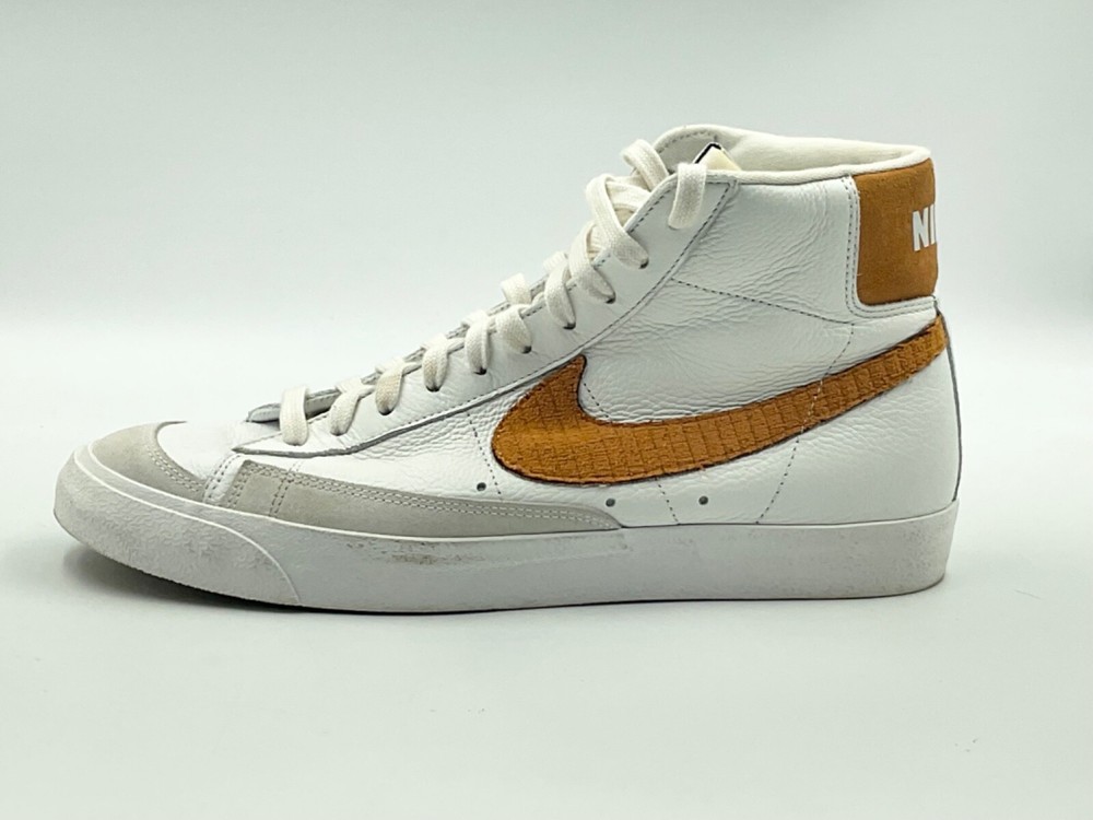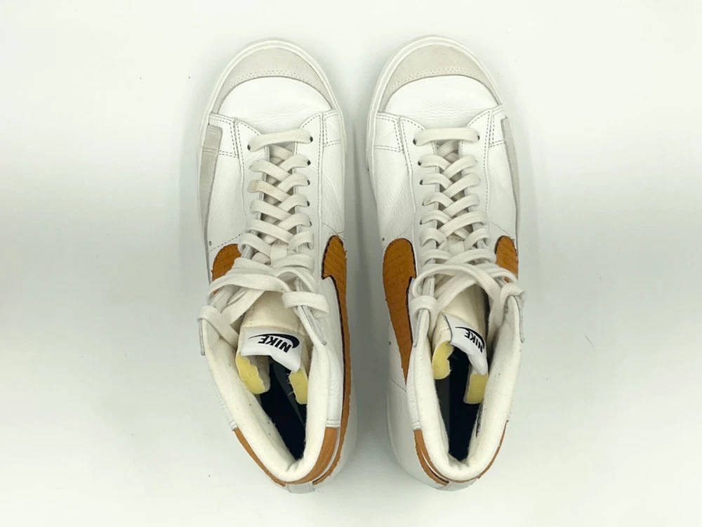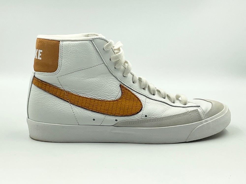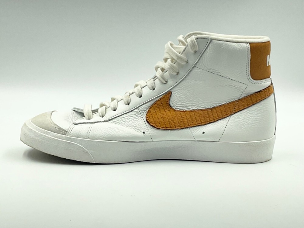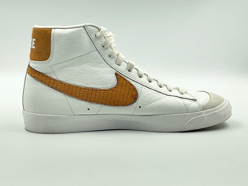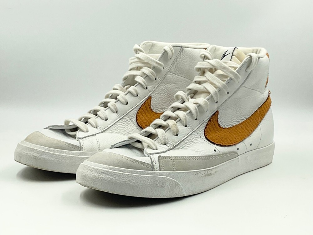 Pre Owned. Please review pictures for cosmetic stains. The Nike Blazer Mid '77 Vintage By You gets a classic makeover with innovative corduroy that you can cut, tear or just wear out so that a wavy, carpet-like material with its own style becomes visible. With openwork mesh, classic leather and lush suede in thirteen colors, you can change the textures and palette.Three different Swoosh Dozens of combinations With thirteen colors, different textures and three different Swoosh designs, you have all the tools to turn this classic into a masterpiece. Unique finish Add a personal message to the inside of the tongue for the finishing touch of a unique sneaker. From the pitch to the street The sturdy Blazer was originally designed for basketball performance and provides long-lasting comfort. This version includes new materials and details that give wings to the classic. Bx-16
