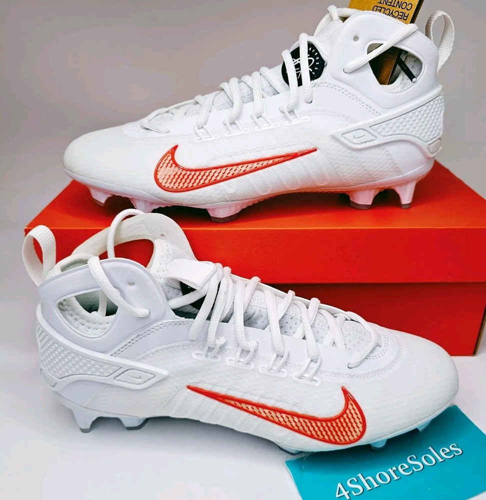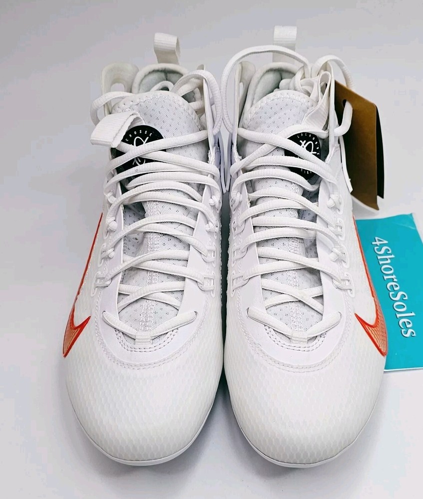 NEW with box Nike Men's 8.5 / women's 10 Huarache 9 Elite Mid LAX Lacrosse Cleats White Orange FV6146-102 100 percent authentic