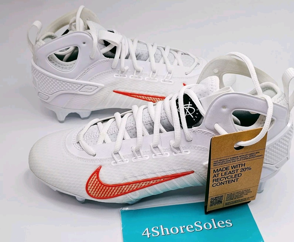 NEW with box Nike Men's 8.5 / women's 10 Huarache 9 Elite Mid LAX Lacrosse Cleats White Orange FV6146-102 100 percent authentic...