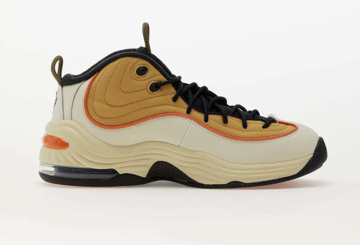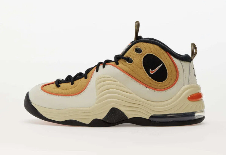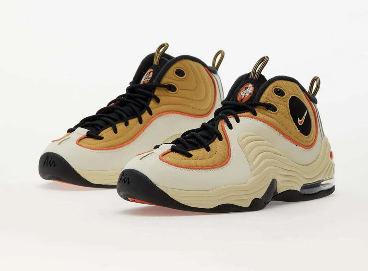 Elevate your basketball game with these Nike Air Penny 2 sneakers in a rare Wheat colorway. The mid-top style provides excellent support while the lace-up closure ensures a secure fit. The Lil Penny 2 character adds a touch of fun to these sneakers, which are perfect for school or basketball performance. These sneakers feature arch support, cushioning, slip resistance, lightweight construction, and comfort padding for maximum performance. The Nike Air Penny model is a highly sought-after sneaker for its quality construction and timeless style. Don't miss out on adding these to your collection. Wheat Gold & Safety Orange. Free Shipping