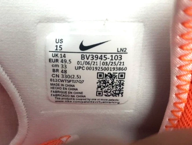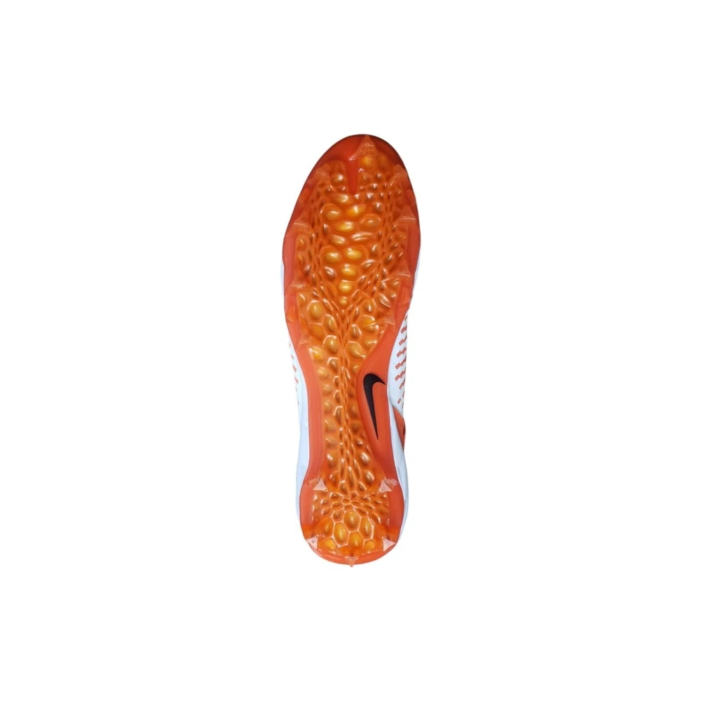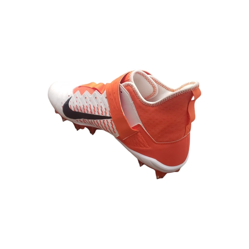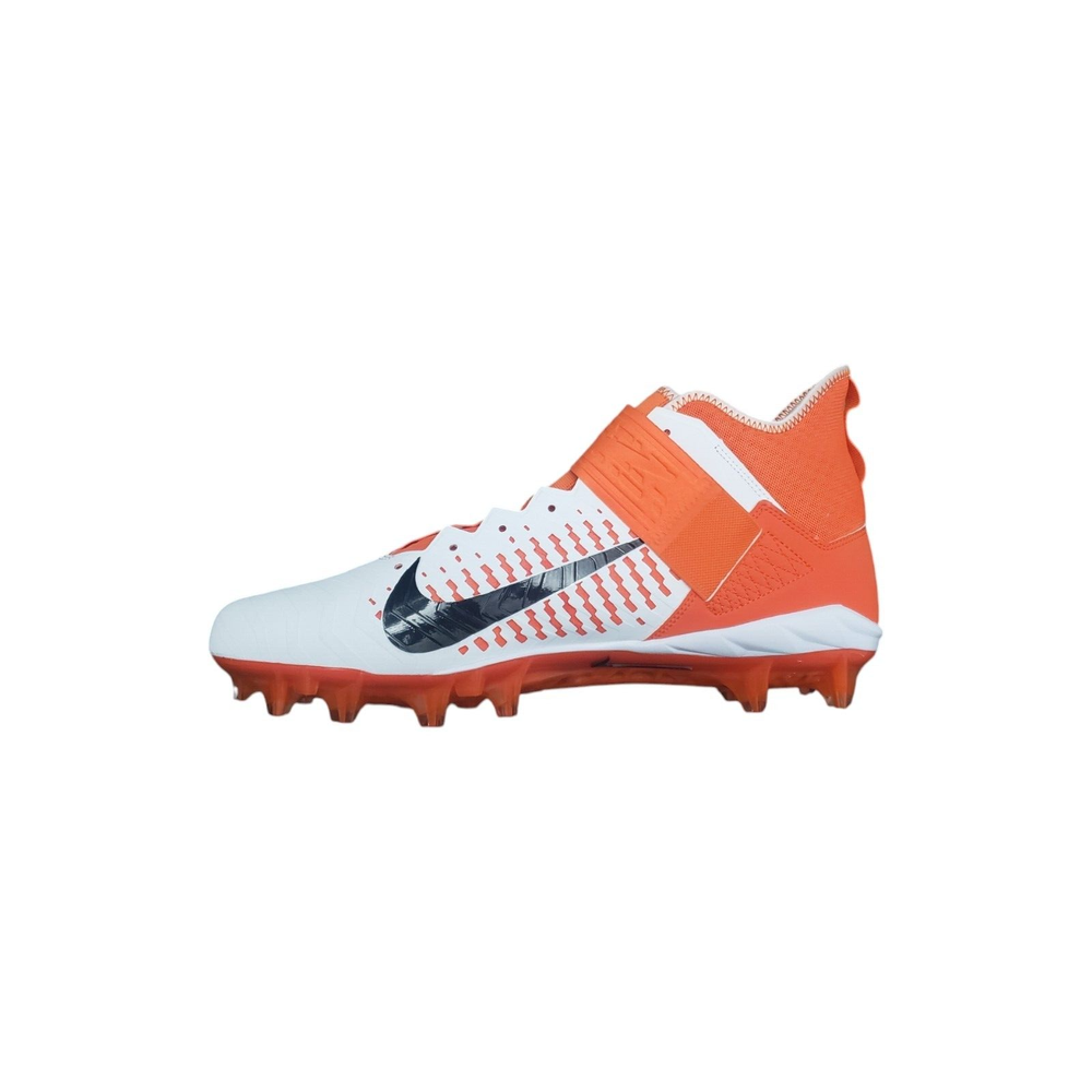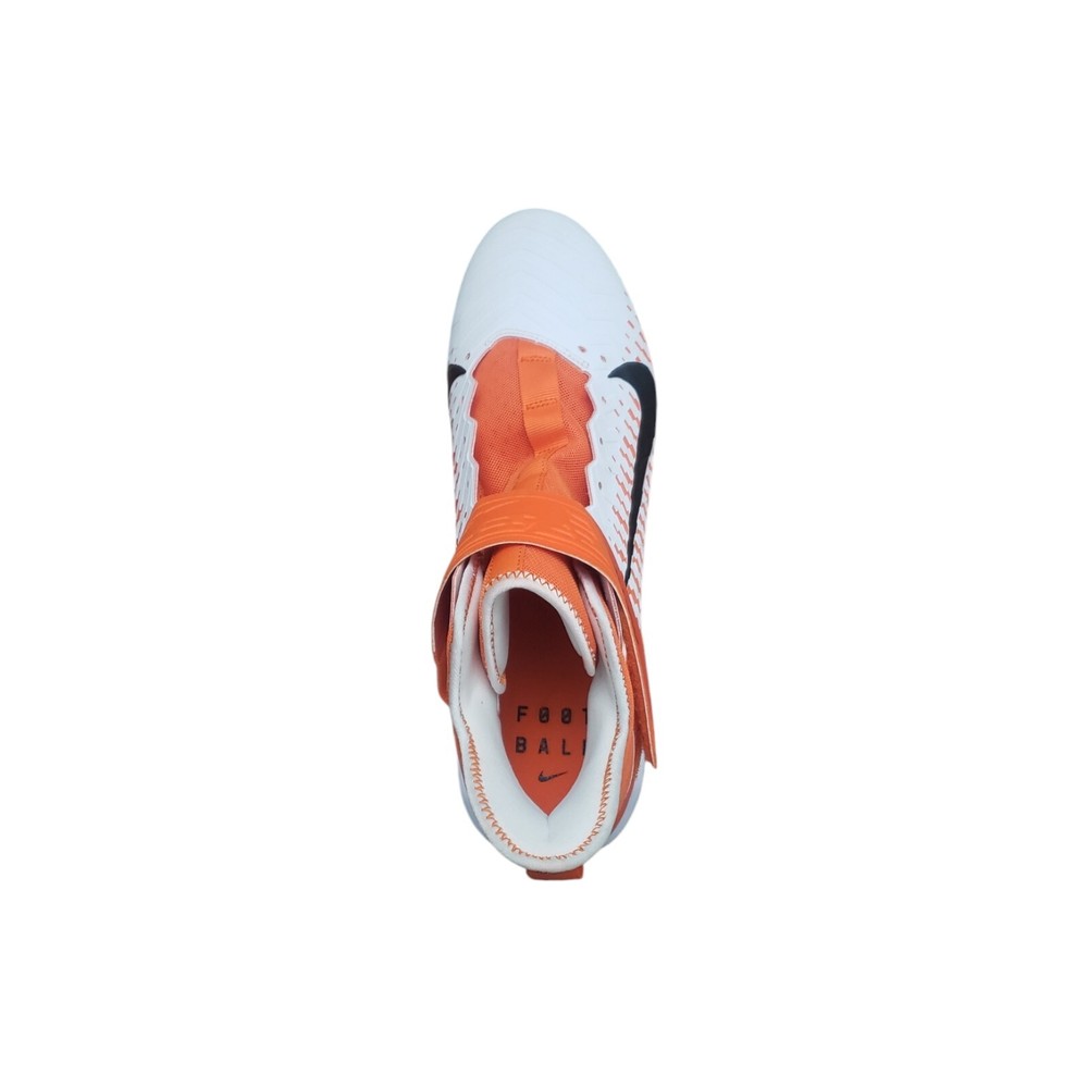 Nike Men's Alpha Menace Pro 2 Mid Football Cleat Shoes White / Orange Size 15 The Nike Alpha Menace Pro 2 Mid takes the traditional cleat to the next level. Fabric and synthetic materials create a durable design that holds your foot securely for quick cuts. The TPU propulsion plate provides support and a responsive feel. Nike Alpha Menace Pro Mid 2 Football Cleat Shoes: No Shoelaces, need close to a 70-inch lace Synthetic combines with a textile layer for secure comfort Phylon foam provides lightweight cushioning Molding at the toe helps resist abrasion Strap with a hook-and-loop closure secures the fit Tongue wraps from the lateral side of the shoe to the arch, eliminating seams at the top of the foot TPU propulsion plate provides support and a responsive feel Color: White / Brilliant Orange / Black Size: 15, UK 14, EUR 49.5