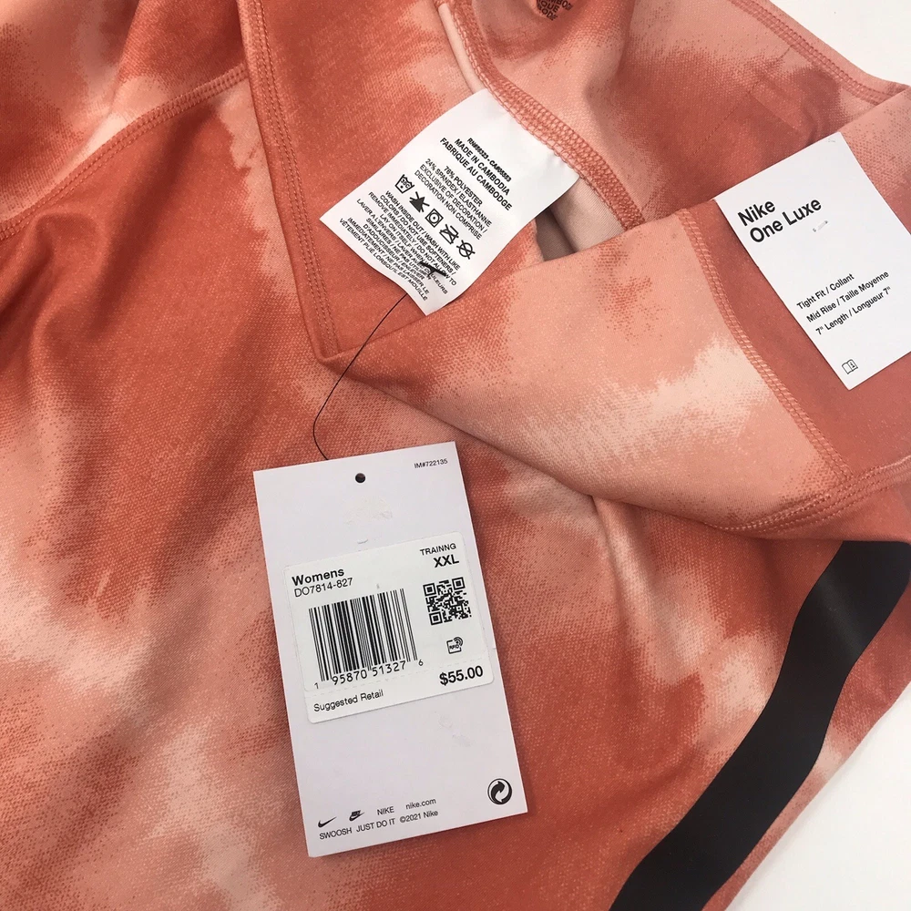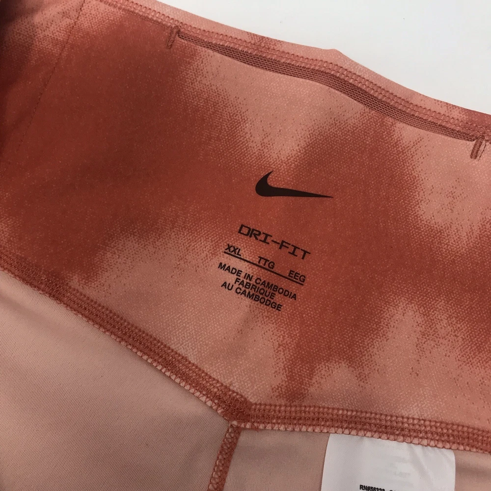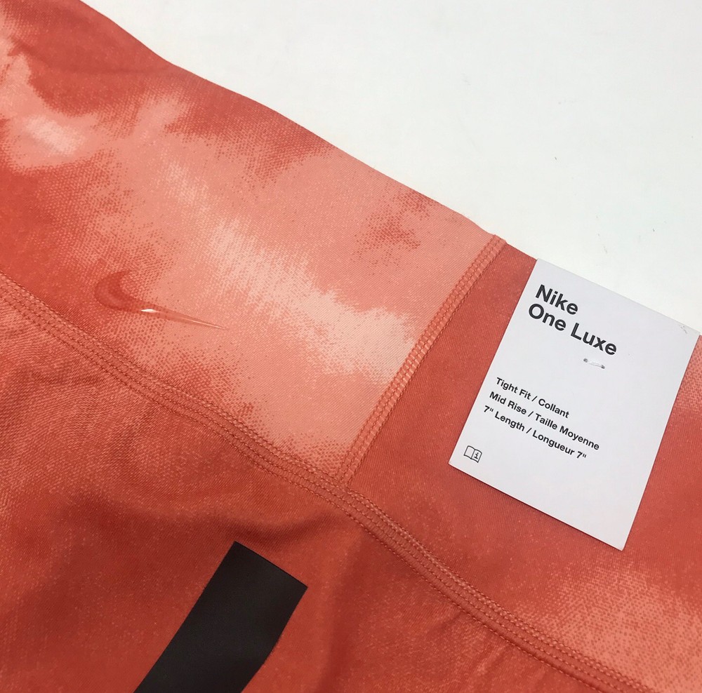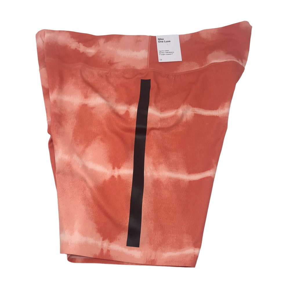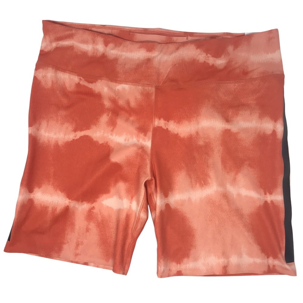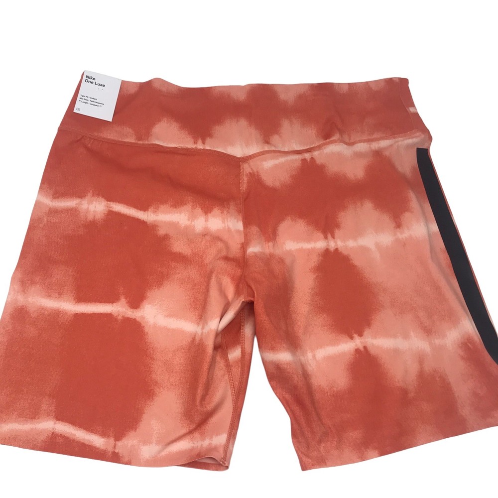 Nike One Luxe Tight Dri Fit Mid Rise Orange Tie Dye Training Shorts Women Sz XXL. Brand new with tags- excellent condition! Sz XXL Non sheer construction Slight V back contour fit smooth shaping 3 hidden pockets at waistband Moisture wicking Inseam 7” 76% polyester 24% spandex Smoke free home Happy shopping!