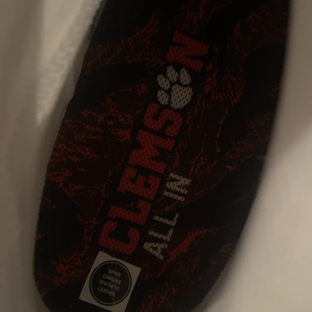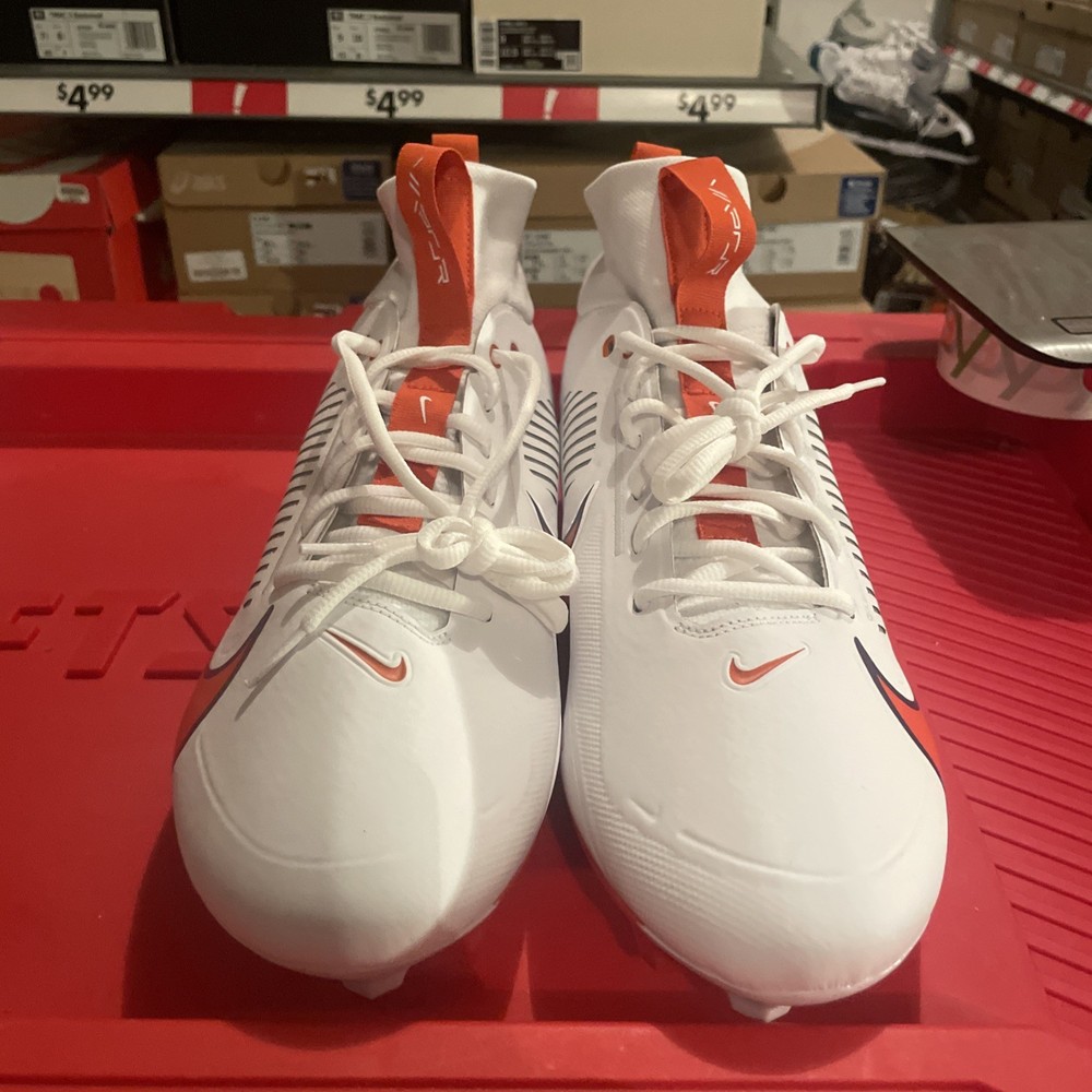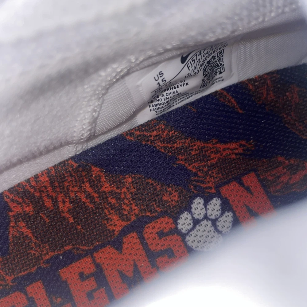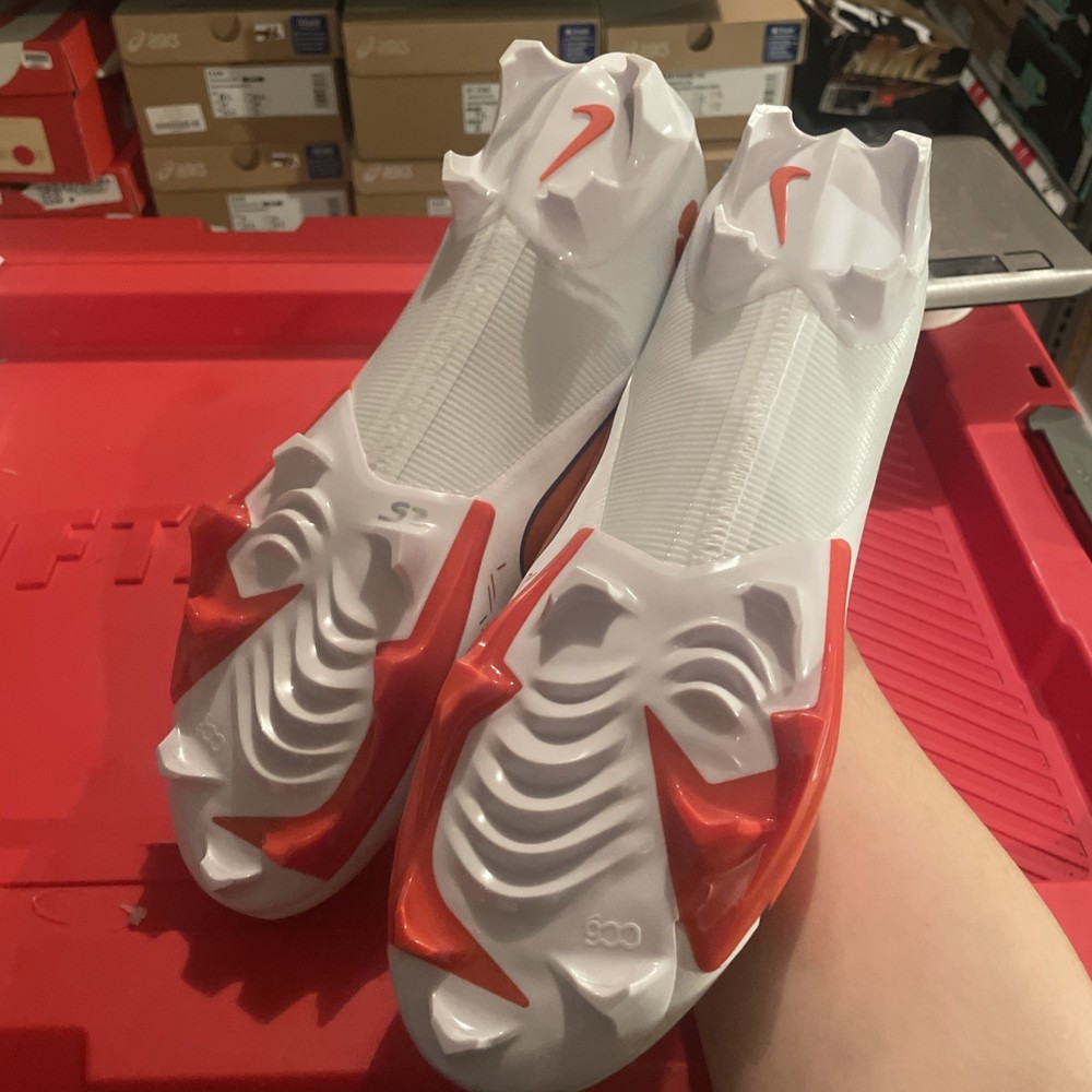 The Nike Vapor Edge Pro 360 2 Clemson Tigers PE in Orange and White is a stylish and performance-driven athletic sneaker designed for men. With a lace-up closure and mid-top shoe shaft style, this shoe offers a comfortable and breathable fit for all seasons. Featuring cushioning, lightweight design, and plastic cleat type, it is perfect for football players looking to enhance their performance on the field. The shoe also showcases a solid white color with the iconic Clemson character, making it a unique choice for fans and athletes alike. Made with synthetic upper material in Vietnam, this Nike Vapor Edge Pro 360 2 model is a standout addition to any athletic wardrobe.