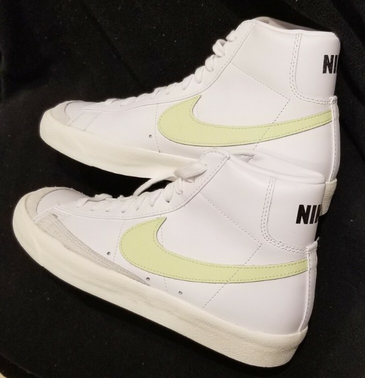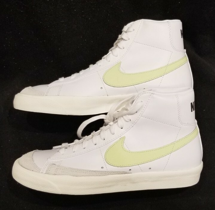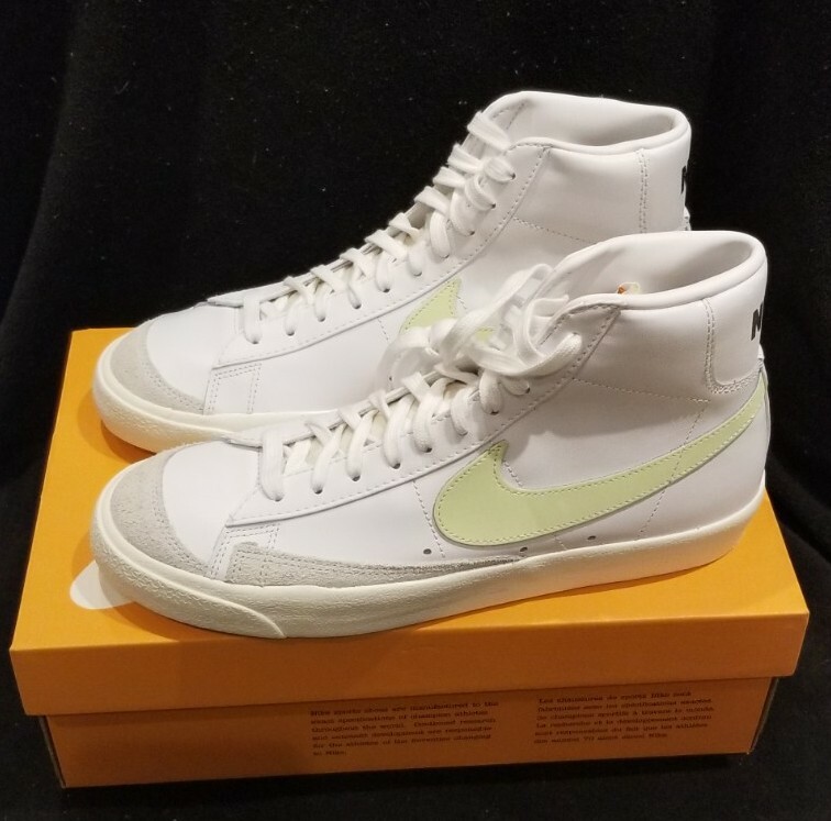 NIKE W BLAZER MID '77 Women's sz 11.5 = Men's sz 10 NEW, never worn with origin Nike box. White with Barely Volt swoosh. 100% Authentic, purchased from an authorized major Nike retailer. Please make sure of sizing as this is final sale. Try on a similar shoe before purchasing. Shipping within CANADA is $19.95/tracked. Shipping to the USA is $19.95/tracked. Yes I do combine shipping when possible. ****Buyer is responsible for ALL customs fees/charges if any.****
