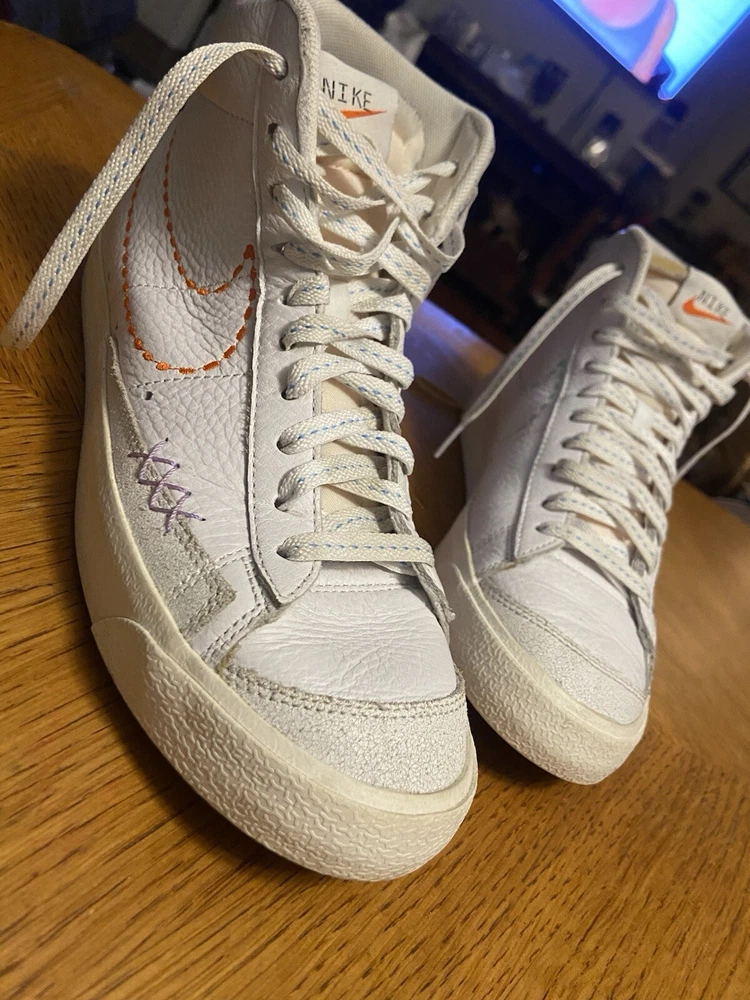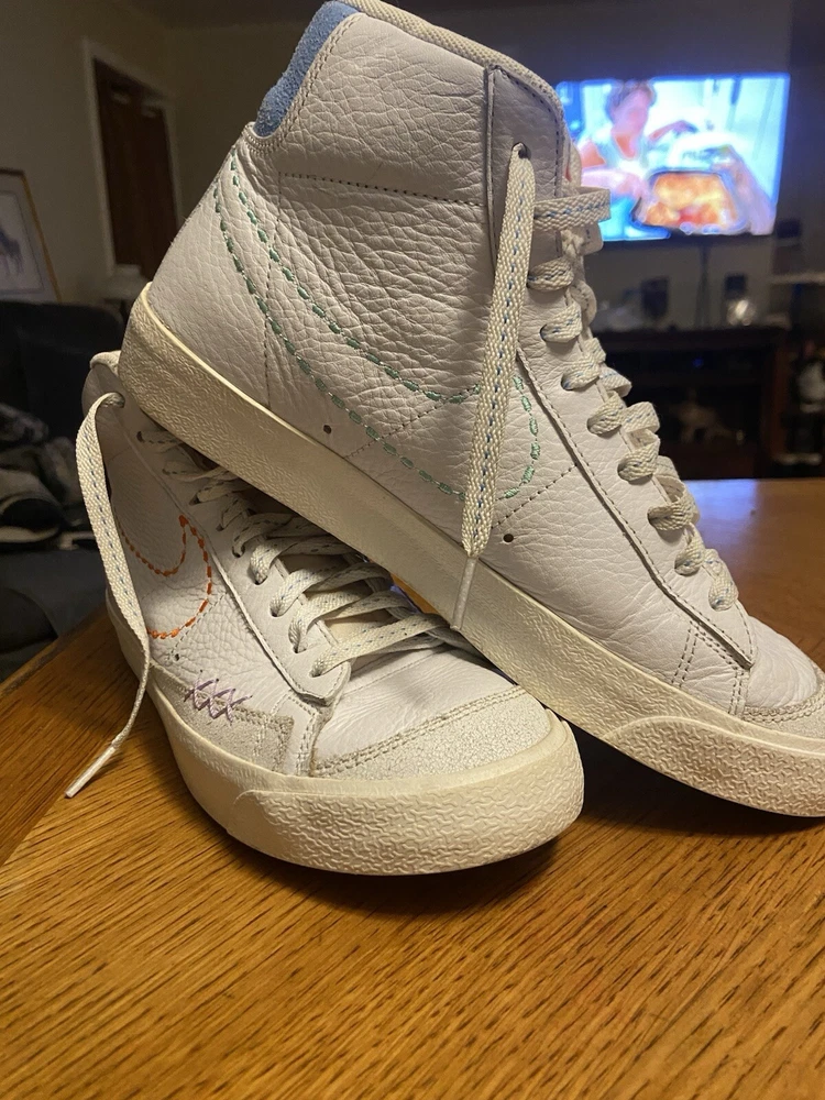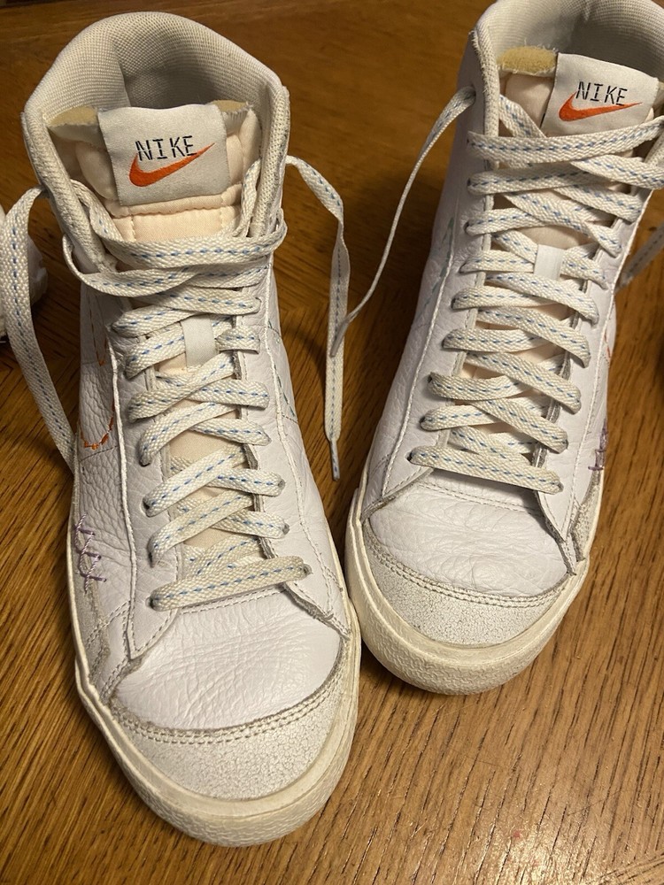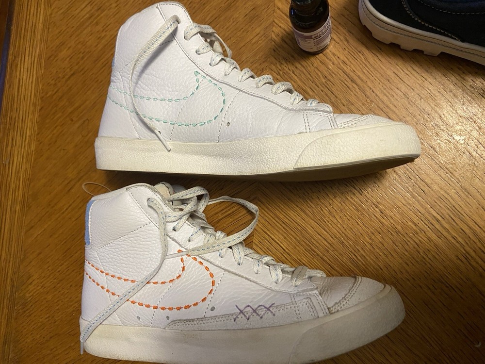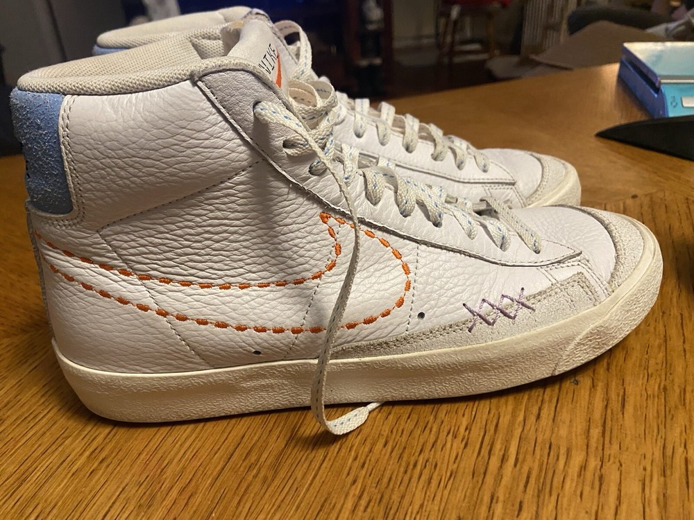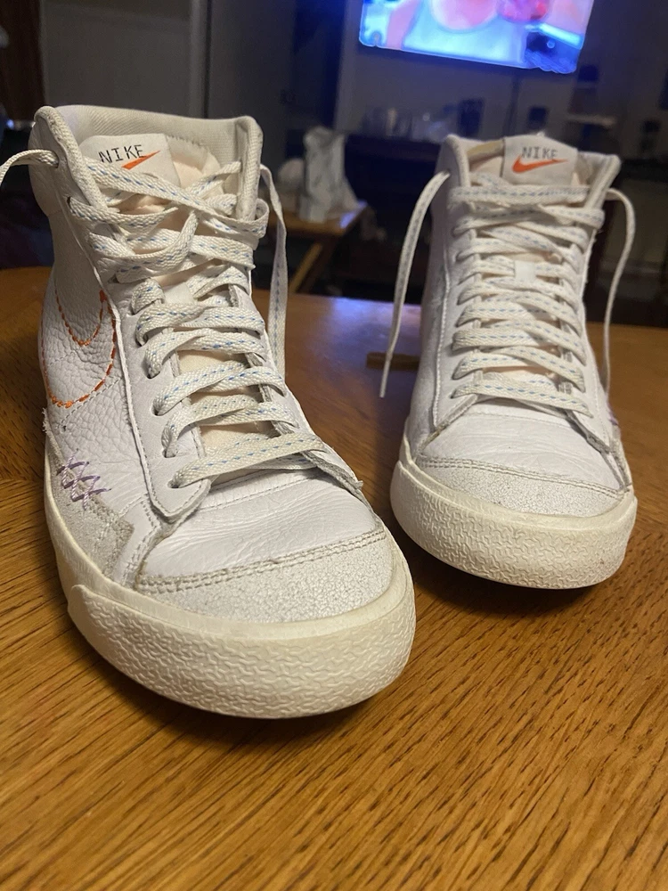Great Condition see pics The Nike W Blazer Mid '77 White Orange Sneakers are a stylish choice for women in size 9.5. These sneakers feature a mid-top shoe shaft style with a lace-up closure and solid white color accented with the Nike logo. Made of leather, these sneakers are designed for athletic use, specifically boxing. The model number is DX2350-100 under the Nike Blazer product line, showcasing a classic sneaker style that offers both performance and style for the wearer. 🐣🎄😇☃️🤶✝️😉😃❤️ I have inherited a storage unit full of treasure. I’ll probably be putting stuff in for a long time***Don’t believe many of these were used much ..but they are vintage & have been in storage.. 🎈 If you order more then one item I will bundle & refund extra shipping $$ 🎈 FASTEST SHIPPER MONDAY-SAT (MORNINGS) I use boxes & materials wherever I can get it from..Saves on prices 😎 “Please see shipping alternatives” PLEASE CONTACT "FIRST" IF YOU WANT TO BUNDLE MORE THEN ONE ITEM SO I CAN ADJUST FOR LOWEST SHIPPING PRICE (shipping is $$ now).... NONE SMOKING POLICY: This item is sold "AS IS". Wear is noted in the description above. I describe all of my items to the best of my ability. Ask questions ? I will answer them asap.. RETURNS Returns accepted for items not as described or pictured. Buyer must contact seller within 48 hours of delivery. Thank You ☺️ 🤔🧐