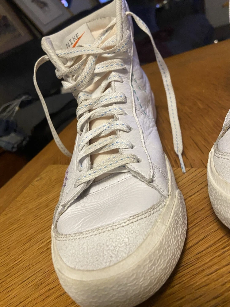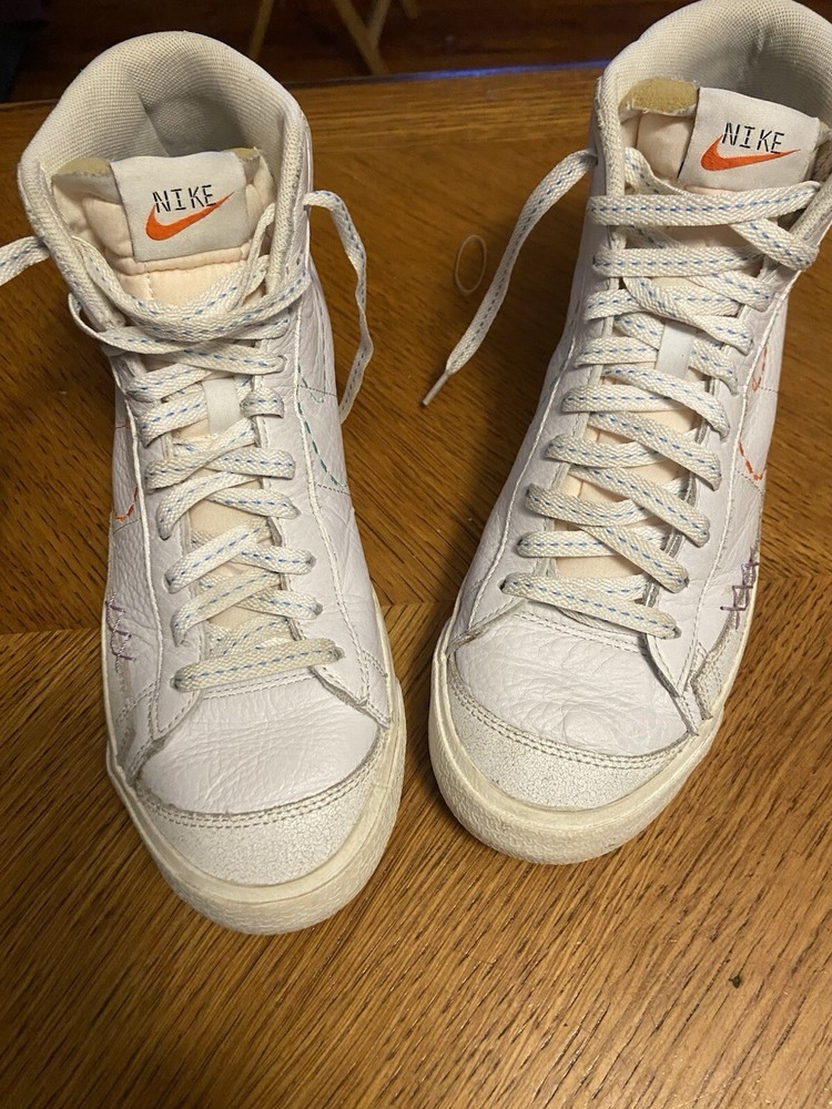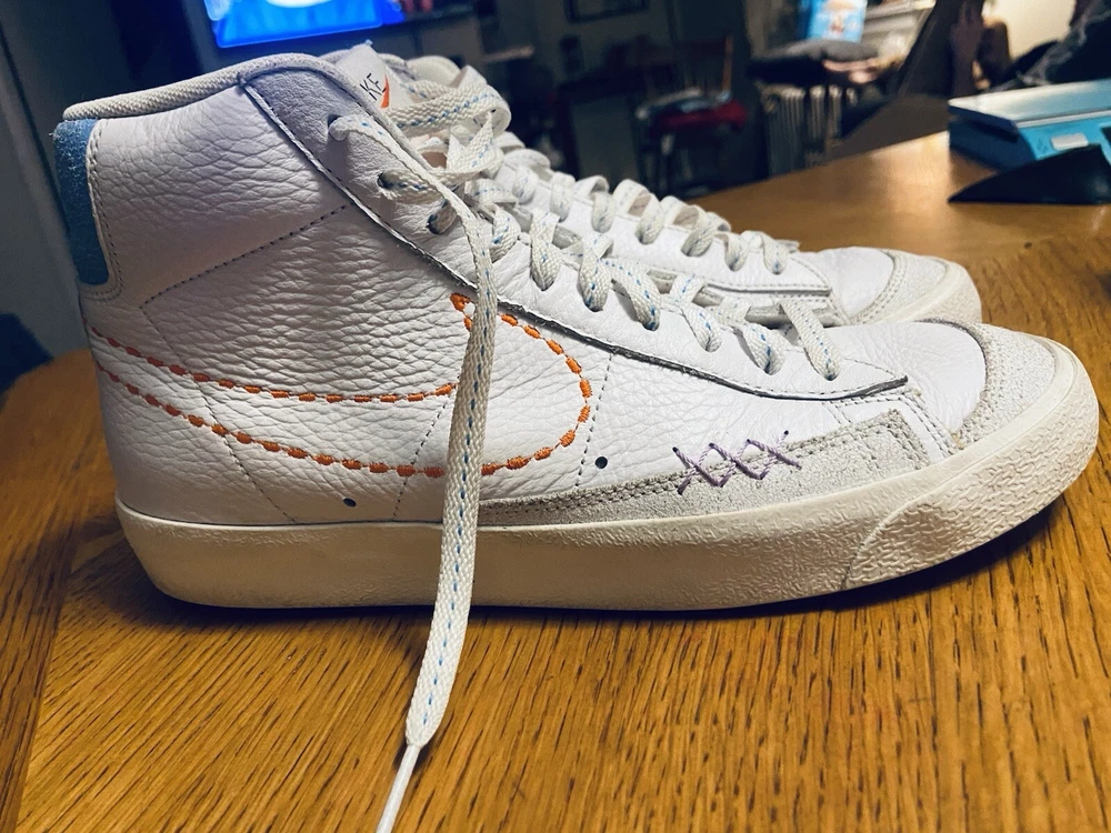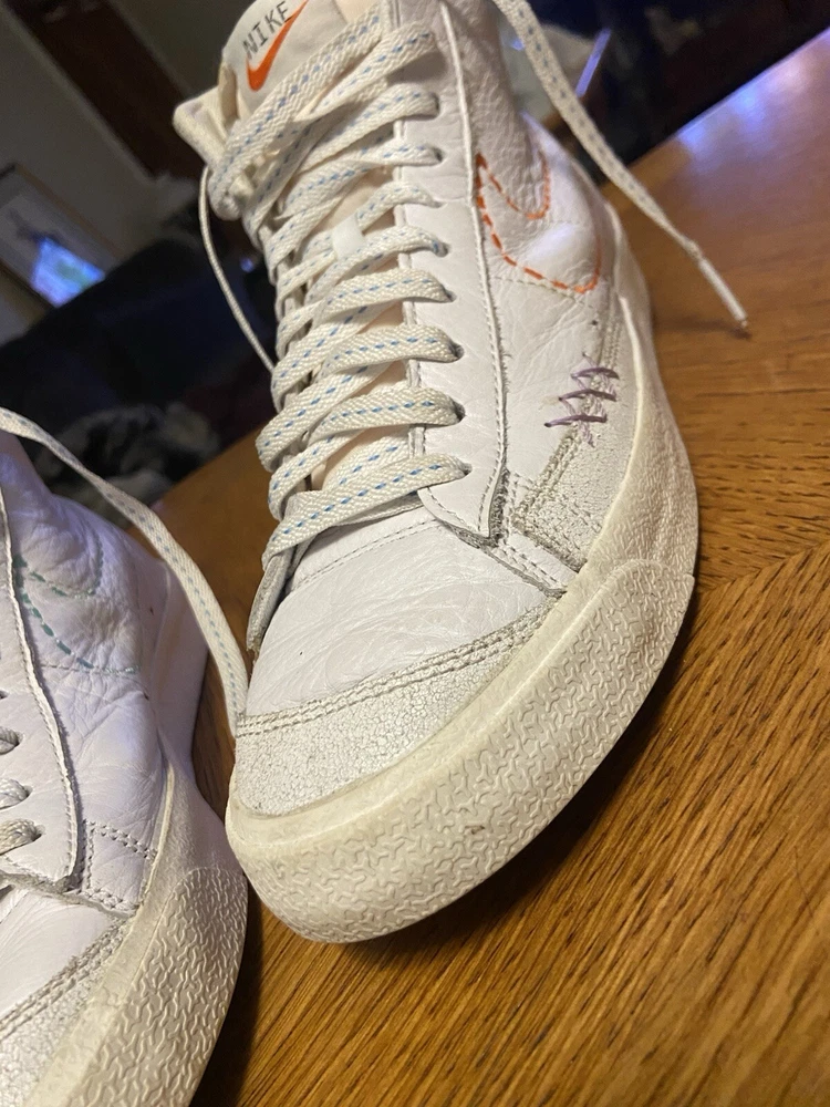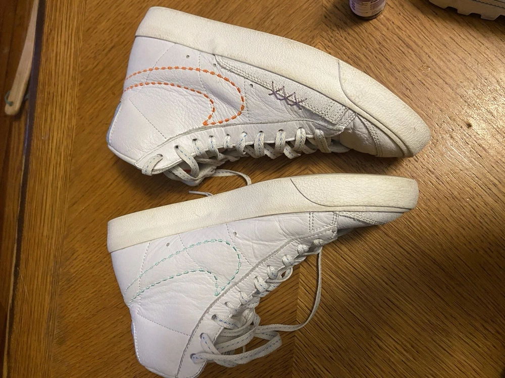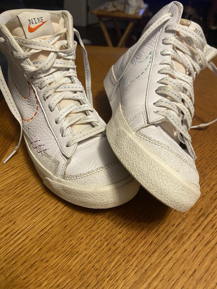 Great Condition see pics The Nike W Blazer Mid '77 White Orange Sneakers are a stylish choice for women in size 9.5. These sneakers feature a mid-top shoe shaft style with a lace-up closure and solid white color accented with the Nike logo. Made of leather, these sneakers are designed for athletic use, specifically boxing. The model number is DX2350-100 under the Nike Blazer product line, showcasing a classic sneaker style that offers both performance and style for the wearer. 🐣🎄😇☃️🤶✝️😉😃❤️ I have inherited a storage unit full of treasure. I’ll probably be putting stuff in for a long time***Don’t believe many of these were used much ..but they are vintage & have been in storage.. 🎈 If you order more then one item I will bundle & refund extra shipping $$ 🎈 FASTEST SHIPPER MONDAY-SAT (MORNINGS) I use boxes & materials wherever I can get it from..Saves on prices 😎 “Please see shipping alternatives” PLEASE CONTACT "FIRST" IF YOU WANT TO BUNDLE MORE THEN ONE ITEM SO I CAN ADJUST FOR LOWEST SHIPPING PRICE (shipping is $$ now).... NONE SMOKING POLICY: This item is sold "AS IS". Wear is noted in the description above. I describe all of my items to the best of my ability. Ask questions ? I will answer them asap.. RETURNS Returns accepted for items not as described or pictured. Buyer must contact seller within 48 hours of delivery. Thank You ☺️ 🤔🧐