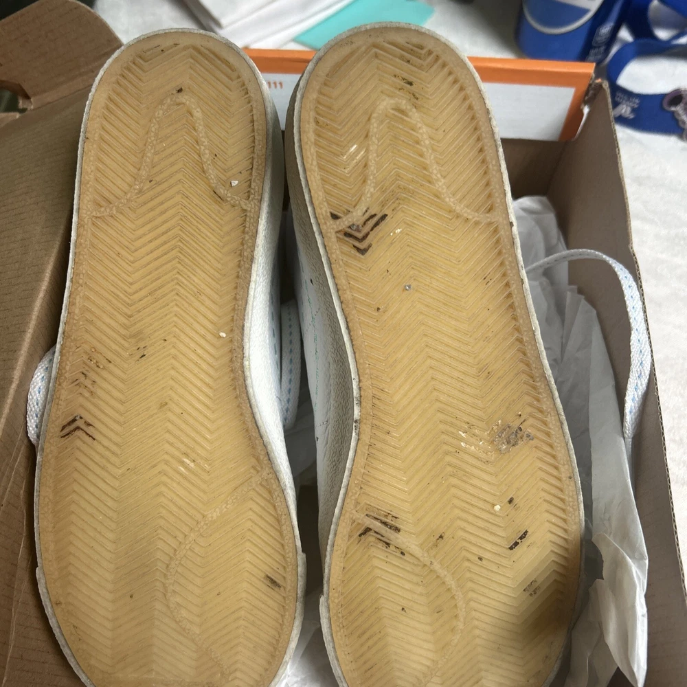 Box is worn from moving around. Shoes are in great shape. See pics for used condition. Good shape shoes! A little cleaning up will make these things shine....