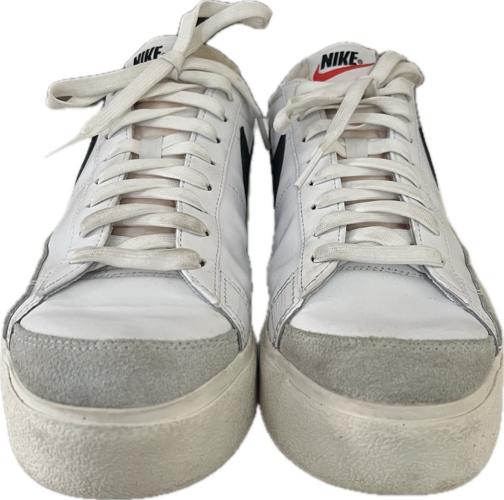 The Nike Women's Blazer Low '77 Platform Sneaker Shoes in Classic White (style code: DJ0292-101) are a stylish and comfortable choice for women. These low-top sneakers feature a solid white color with a lace-up closure, making them versatile for various activities such as walking and school. Made with leather uppers, rubber outsoles, and a foam insole, these shoes offer both durability and cushioning for all-day wear. The Nike Blazer Platform model is designed for athletic performance and is part of the popular Nike Blazer product line.