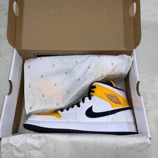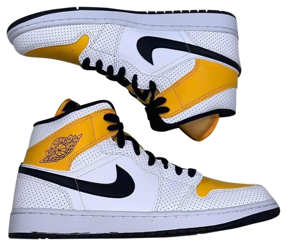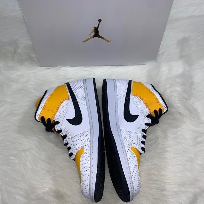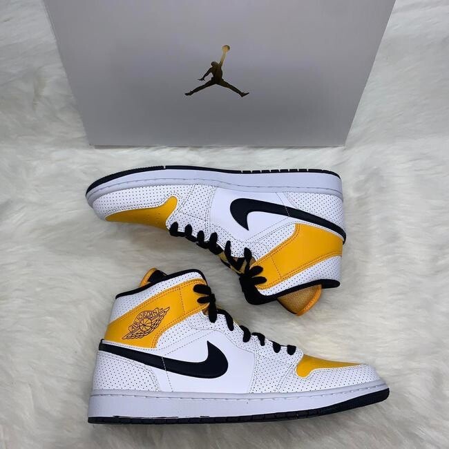 Nike Women's Air Jordan 1 Mid Perforated White University Gold Shoes BQ6472-107 Brand new in original box no flaws. Brand: Nike Condition: New Color: University Gold Sizes: US Women 10 also fits a Men's size 8.5 US Women's 12 also fit a Men's 10.5 Style Number: BQ6472-107 Sold as pictured. Thank you for visiting sweet angel!