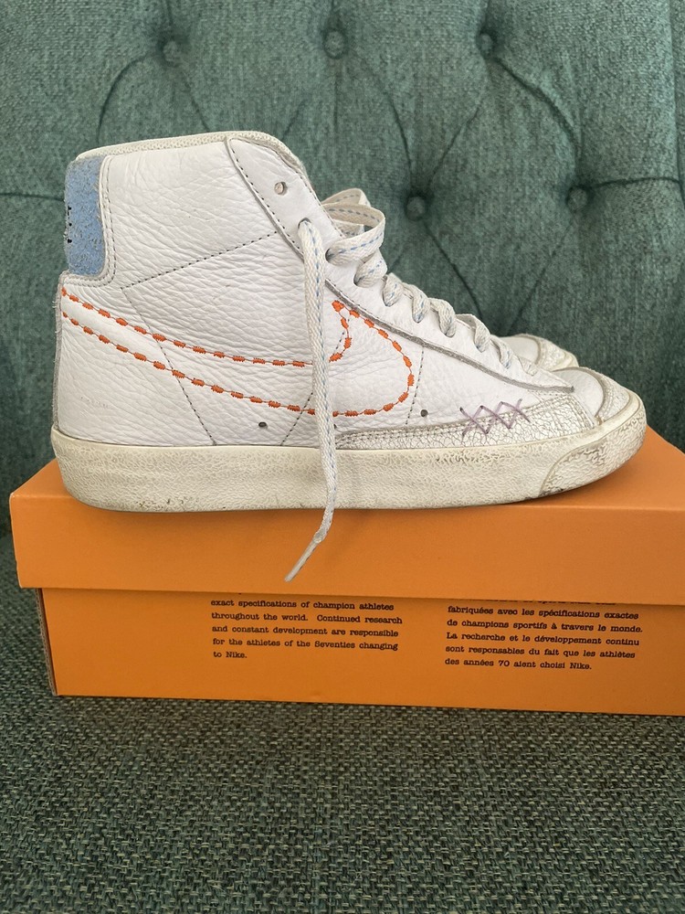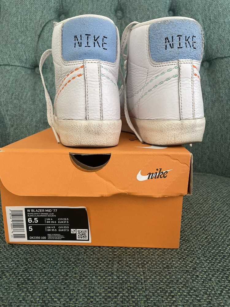 Nike Women's Blazer Mid '77 White/Safety Orange-Lilac Size 6.5 Women 5 Mens. Condition is Pre-owned. Shipped with USPS Priority Mail....