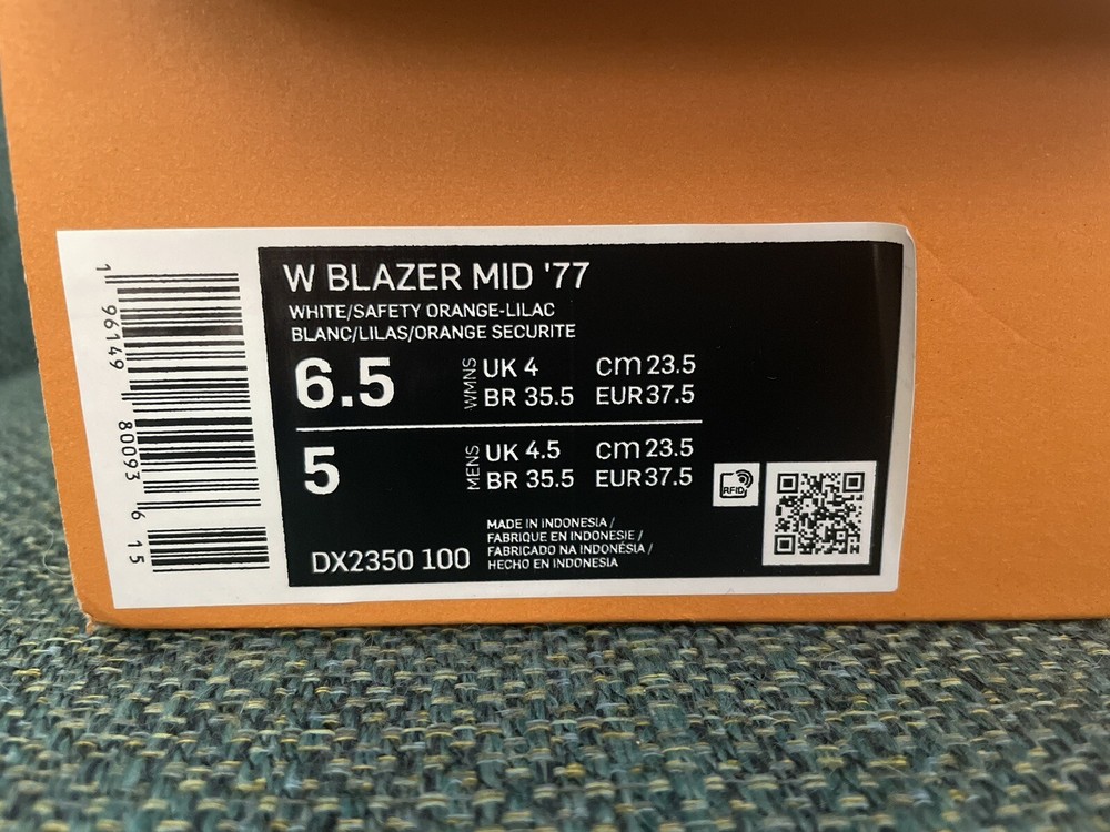 Nike Women's Blazer Mid '77 White/Safety Orange-Lilac Size 6.5 Women 5 Mens. Condition is Pre-owned. Shipped with USPS Priority Mail.